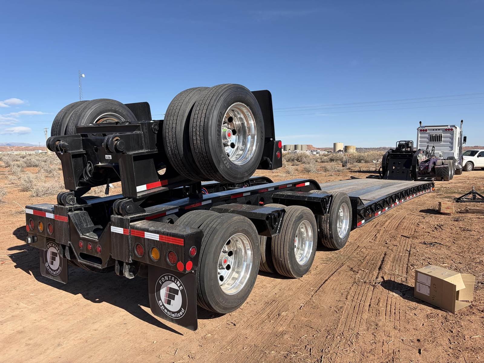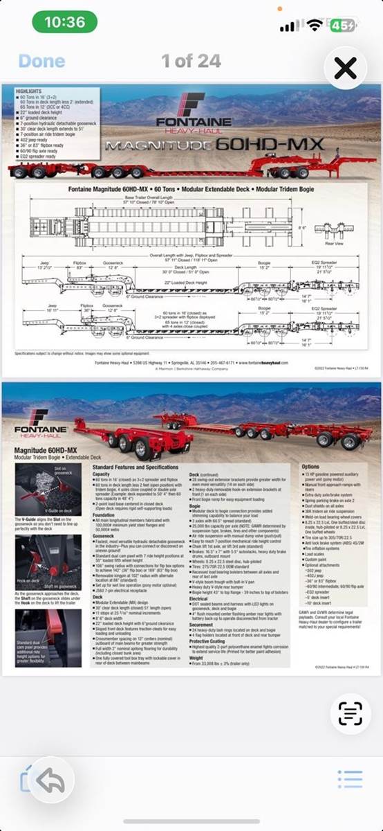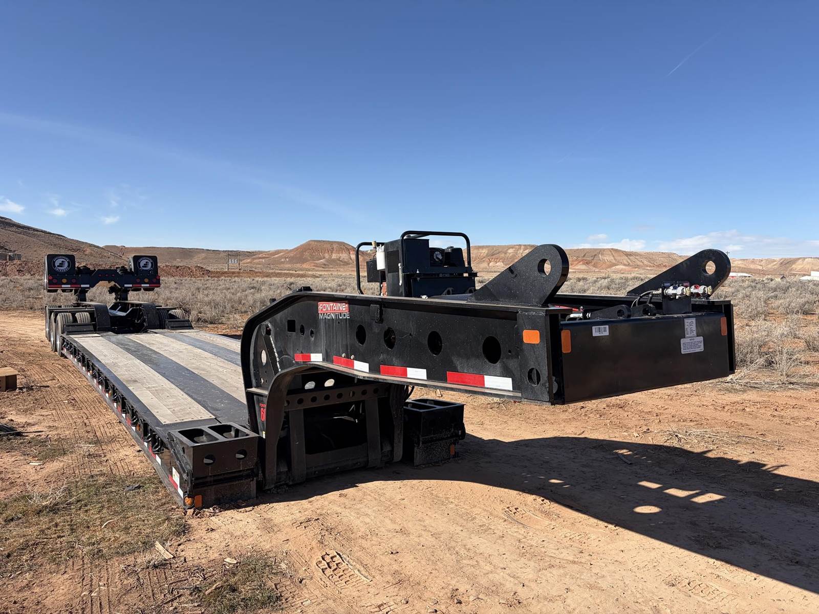 New 2026 Fontaine Magnitude 60HD-MX, 60 Ton Lowboy Trailer with Extendable Deck - 30' Closed - 51' Extended, Tridem Air Ride Rear Axles - Front one chains up, rear one air lifts. In addition to Standard Features and Specifications shown in attached brochure in photos, the trailer has manual front load ramps, and used EQ1 spreader bar that can be utilized with rear stinger/flip axle. FET has been paid and is included in the asking price of $267,900.00 - Trailer is located in Roosevelt, Utah