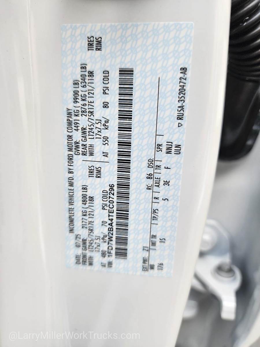 Options: 1 153 18A 18B 1S 425 44F 512 52B 572 600A 66D 66S 67D 96V 99A TBM X3E Z1,VEHICLE INTEGRATION SYSTEM 2.0 -inc: programmable vehicle integration system Recommended for trucks that will utilize upfit aftermarket equipment,SPARE TIRE WHEEL CARRIER & JACK,OXFORD WHITE,UPFITTER SWITCHES (6) -inc: Located in overhead console,PLATFORM RUNNING BOARDS,PICKUP BOX DELETE -inc: rear view camera and prep kit Deletes tailgate tie down hooks rearview camera and 7/4 pin connector Incomplete vehicle package - requires further manufacture and certification by a final stage manufacturer In addition Ford urges manufacturers to follow the recommendations of the Ford incomplete vehicle manual and the Ford truck body builder's layout book (and applicable supplements) GVWR: 9 900 lbs Rear Bumper Delete Spare Tire Wheel Jack & Tire Carrier Delete,FRONT LICENSE PLATE BRACKET -inc: Standard in states requiring 2 license plates and optional to all others,ELECTRONIC-LOCKING W/3.73 AXLE RATIO,XL CHROME PACKAGE -inc: 4 pickup box tie-down plates Halogen Fog Lamps Bright Chrome Hub Covers & Center Ornaments Chrome Rear Step Bumper Chrome Front Bumper,TRANSMISSION: TORQSHIFT-G 10-SPEED AUTOMATIC -inc: SelectShift and selectable drive modes: normal eco slippery roads tow/haul and off-road (STD),TIRES: LT245/75RX17E BSW A/T -inc: Spare may not be the same as road tire,250 AMP ALTERNATOR,TRAILER BRAKE CONTROLLER -inc: smart trailer tow connector,MEDIUM DARK SLATE CLOTH 40/20/40 SPLIT BENCH SEAT -inc: center armrest cupholder storage and driver's side manual lumbar,ORDER CODE 600A,ENGINE: 6.8L 2V DEVCT NA PFI V8 GAS (STD),190 AMP ALTERNATOR,Four Wheel Drive,Tow Hitch,Power Steering,ABS,4-Wheel Disc Brakes,Brake Assist,Steel Wheels,Tires - Front All-Season,Tires - Rear All-Season,Tow Hooks,Heated Mirrors,Power Mirror(s),Integrated Turn Signal Mirrors,Intermittent Wipers,Variable Speed Intermittent Wipers,Power Door Locks,Daytime Running Lights,Automatic Headlights,AM/FM Stereo,MP3 Capability,MP3 Capability,Steering Wheel Audio Controls,Bluetooth Connection,Telematics,Auxiliary Audio Input,Smart Device Integration,Requires Subscription,Bluetooth Connection,Pass-Through Rear Seat,Rear Bench Seat,Adjustable Steering Wheel,Trip Computer,Power Windows,Keyless Entry,Power Door Locks,Cruise Control,A/C,Split Bench Seat,Driver Adjustable Lumbar,Passenger Vanity Mirror,Smart Device Integration,Requires Subscription,Smart Device Integration,WiFi Hotspot,Power Windows,Power Door Locks,Trip Computer,Security System,Immobilizer,Traction Control,Stability Control,Traction Control,Front Side Air Bag,Telematics,Requires Subscription,Tire Pressure Monitor,Front Head Air Bag,Rear Head Air Bag,Driver Air Bag,Passenger Air Bag,Child Safety Locks