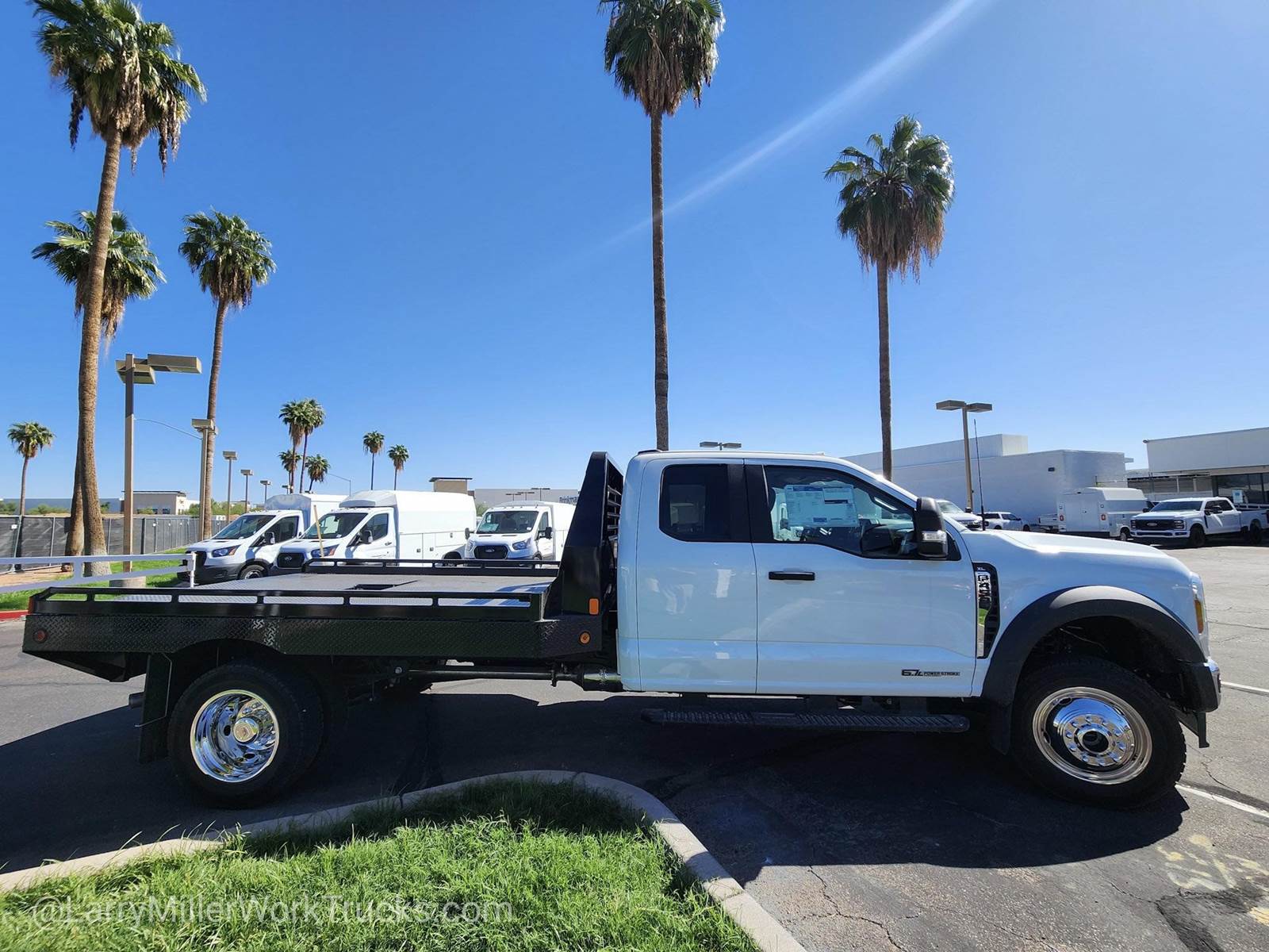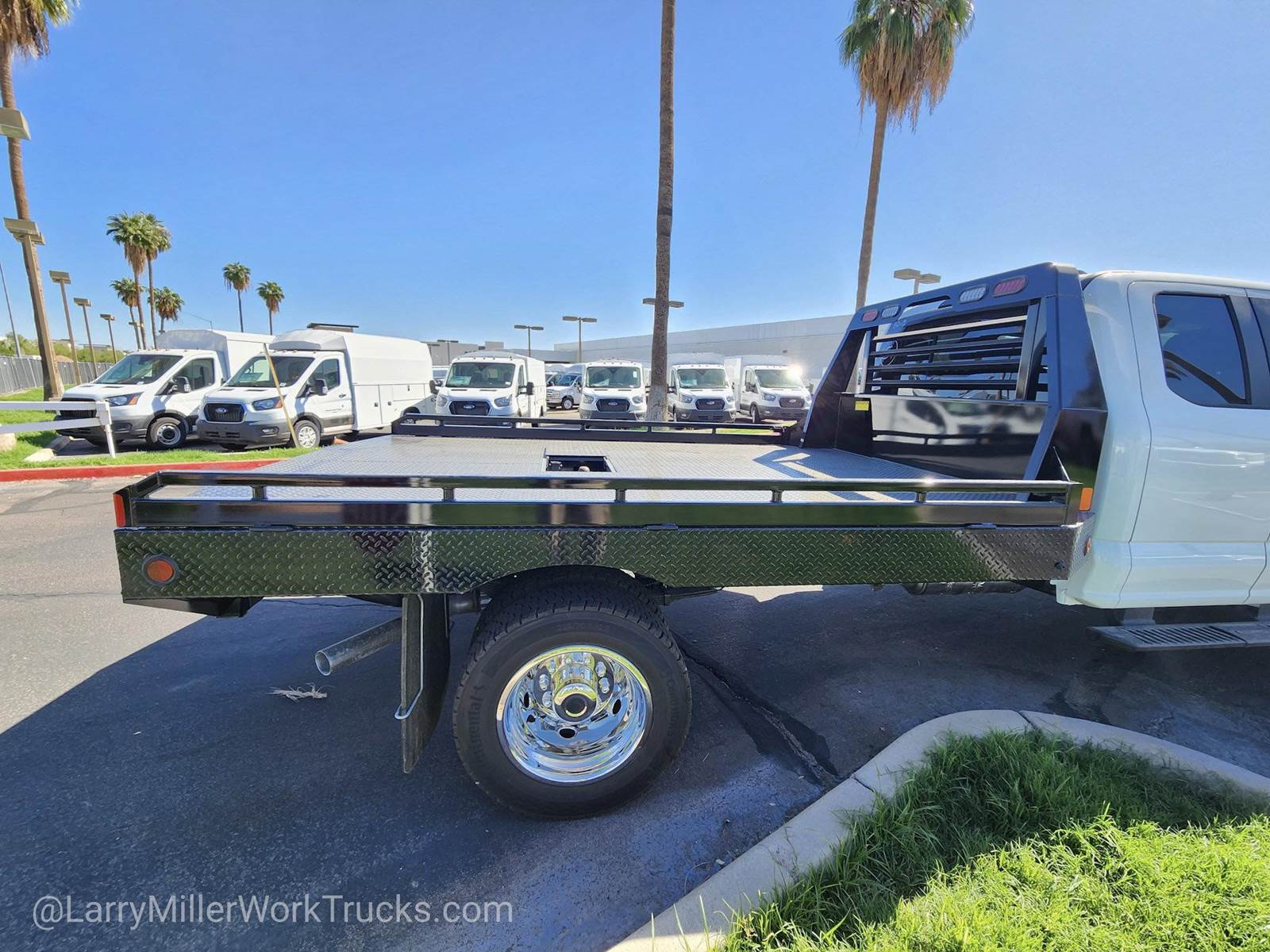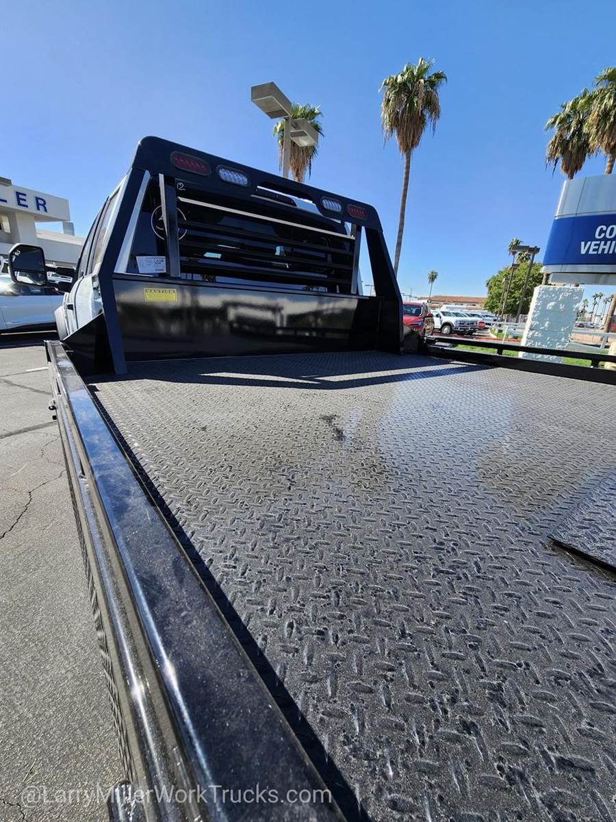 This Ford Super Duty F-450 DRW delivers a Intercooled Turbo Diesel V-8 6.7 L/406 engine powering this Automatic transmission. XL CHROME PACKAGE -inc: Privacy Glass w/Power Sliding Rear Glass, Halogen Fog Lamps, Bright Grille, Remote Start, Chrome Front Bumper, Rear Window Defroster, TRANSMISSION: TORQSHIFT 10-SPEED AUTOMATIC -inc: SelectShift, selectable drive modes: normal, tow/haul, eco, slippery roads and off-road and transmission power take-off provision (STD), TIRES: 225/70RX19.5G BSW TRACTION (TGK) -inc: 4 traction tires on the rear and 2 traction tires on the front, Not recommended for over the road applications; could incur irregular front tire wear and/or NVH.*This Ford Super Duty F-450 DRW Comes Equipped with These Options *SNOW PLOW PREP PACKAGE -inc: pre-selected springs (see order guide supplemental reference for springs/FGAWR of specific vehicle configurations), Note 1: Restrictions apply; see supplemental reference or body builders layout book for details, Note 2: Also allows for the attachment of a winch, Note 3: Highly recommended to add (86M) dual battery on 7.3L gas engine, Adding (67B) 410 amp dual alternators for diesel engine is highly recommended for max power output, GVWR: 16,000 LB PAYLOAD PACKAGE , REAR VIEW CAMERA & PREP KIT -inc: Pre-installed content includes cab wiring and frame wiring to the rear most cross member, Upfitters kit includes camera w/mounting bracket, 20' jumper wire and camera mounting/aiming instructions, PLATFORM RUNNING BOARDS, OXFORD WHITE, ORDER CODE 650A, MEDIUM DARK SLATE, HD VINYL 40/20/40 SPLIT BENCH SEAT -inc: center armrest, cupholder, storage, 2-way adjustable driver/passenger headrests and driver's side manual lumbar, LIMITED SLIP W/4.10 AXLE RATIO, FRONT LICENSE PLATE BRACKET, ENGINE: 6.7L 4V OHV POWER STROKE V8 TURBO DIESEL B20 -inc: Operator Commanded Regeneration (OCR), Diesel Exhaust Fluid (DEF) tank and manual push-button engine-exhaust braking, 4.10 Axle Ratio, 250 Amp Alternator, Dual 68 AH/65 AGM Battery.*Visit Us Today *Stop by Larry H Miller Ford Mesa located at 460 E Auto Center Dr, Mesa, AZ 85204 for a quick visit and a great vehicle!