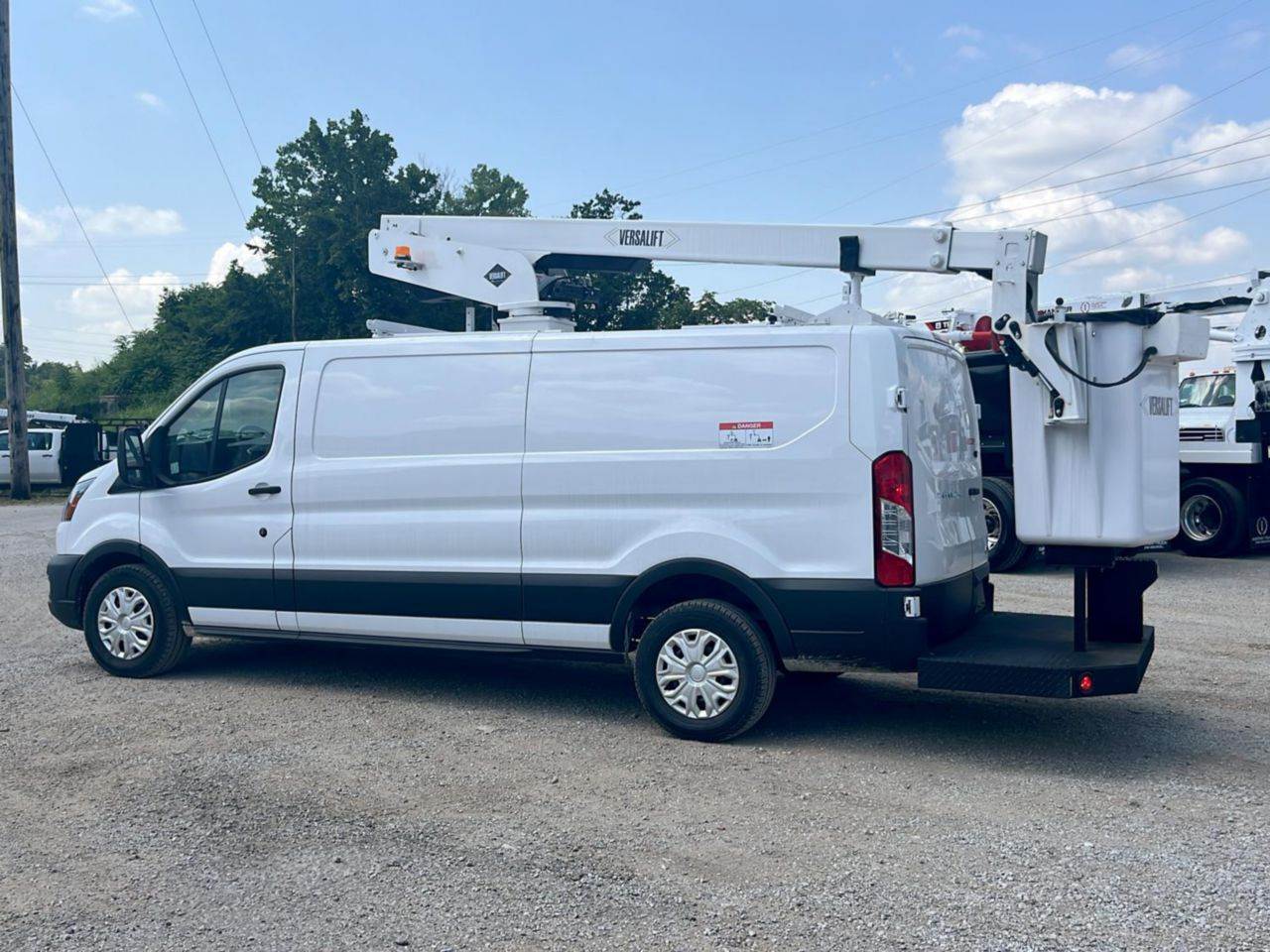 FOR SALE! A brand new Ford Transit T350 4x2 upfitted with a Versalift Vantel-29-NE bucket. This vehicle is powered by a 275 hp Ford 3.5L gasoline engine, and gears are shifted via a 10-speed automatic transmission. The FAWR is 4,130 lbs and the rear is rated at 5,750 lbs. The upfitted Versalift Vantel-29-NE offers a working height of 34' 10" and a side reach of 22' 7". Contact for more information!