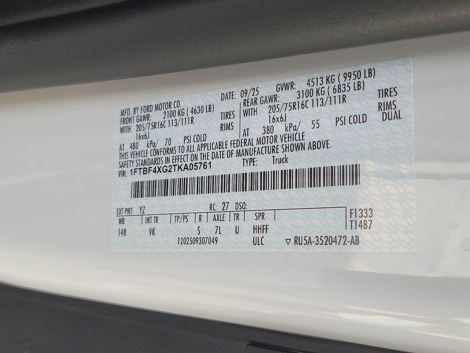 Check out all these great options on this vehicle: Ford Connectivity Package (1-Year Included), Heavy-Duty Trailer Tow Package (Frame Mounted Hitch Receiver and Tow/Haul Mode with Trailering Wiring Provisions), Load Area Protection Package (Front and Rear Vinyl Floor Covering), Order Code 101A (AM/FM Stereo, Dark Palazzo Gray Vinyl Bucket Seats, SYNC 4, Vinyl Front Bucket Seats, and Wheels: 16" Heavy Duty Silver Steel), 2 Additional Keys (4 Total), 4 Speakers, 4-Wheel Disc Brakes, ABS brakes, Air Conditioning, AM/FM radio, Apple CarPlay/Android Auto, Auto High-beam Headlights, Brake assist, Dark Palazzo Gray Vinyl Bucket Seats with Armrests, Delay-off headlights, Driver door bin, Driver's Seat Mounted Armrest, Dual AGM Batteries (70 Amp-Hr Each), Dual front impact airbags, Dual front side impact airbags, Dual rear wheels, Electronic Stability Control, Emergency communication system: 911 Assist, Exterior Parking Camera Rear, Front anti-roll bar, Front Bucket Seats, Front License Plate Bracket, Front reading lights, Front wheel independent suspension, Full Rear Compartment Lighting, Fully automatic headlights, Illuminated entry, Keyless Entry Keypad, Large Center Console, Low tire pressure warning, Midship Extended Range Fuel Tank (31 Gallons), Navigation system: Connected Navigation, Occupant sensing airbag, Overhead airbag, Panic alarm, Passenger cancellable airbag, Passenger door bin, Power door mirrors, Power steering, Power windows, Pro Power Onboard - 400W, Rain sensing wipers, Remote keyless entry, Speed control, Steering wheel mounted audio controls, Tachometer, Telescoping steering wheel, Tilt steering wheel, Traction control, Trailer Brake Controller, and Variably intermittent wipers.