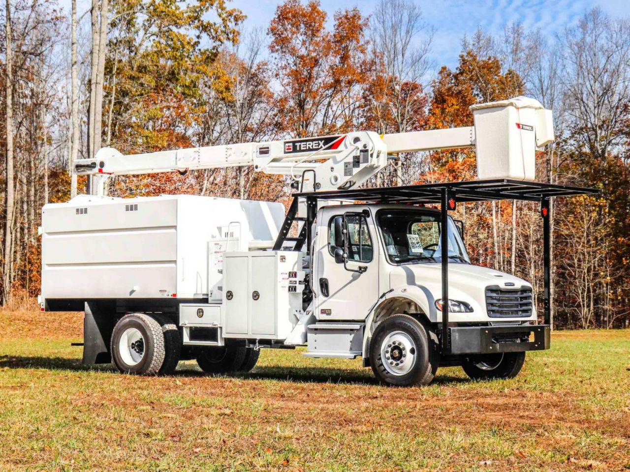FOR SALE! A brand new Freightliner M2106 4x2 upfitted with a Terex XT PRO 60/70-BOC-F-PC forestry bucket/chip truck. This vehicle is powered by a 250 hp Cummins 6.7L diesel motor, and gears are shifted via an Allison 3500RDS automatic transmission. The FAWR is 13.3k lbs and the rear is rated at 21k lbs. The upfitted XT PRO 60/70-BOC-F-PC offers a max working height of 75 ft and a side reach of 49.9 ft. Also features a chipper body. Contact for more information! FET included in price.