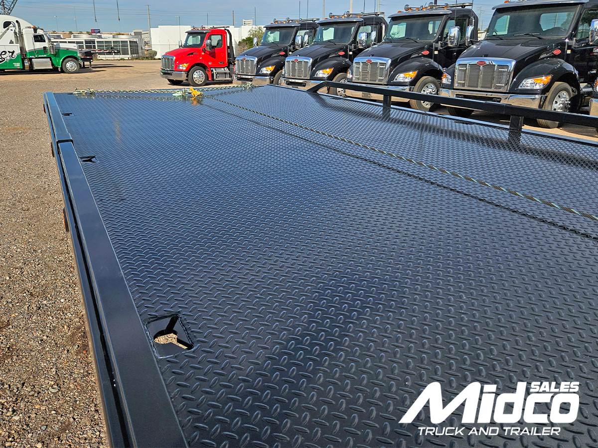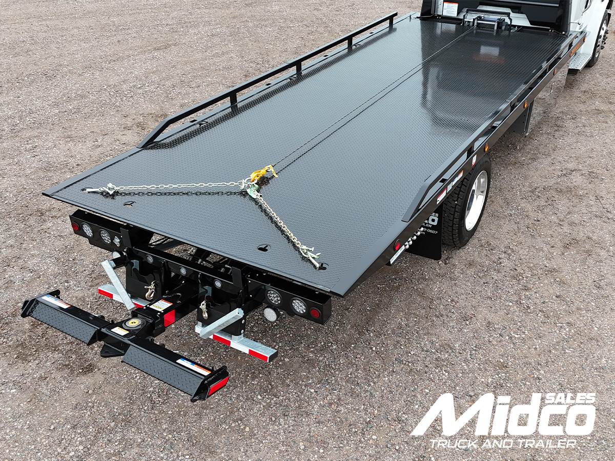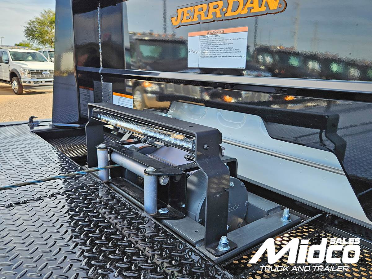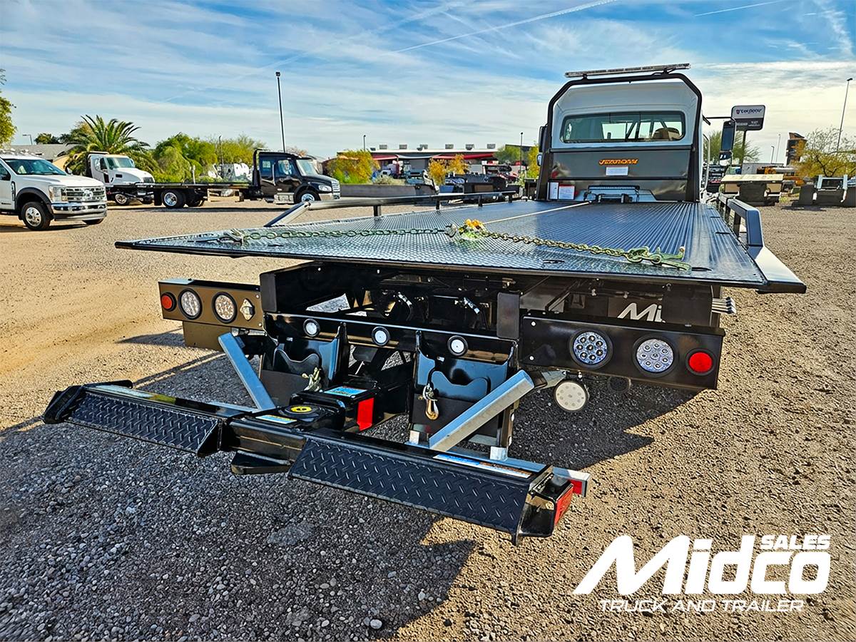For the rollback body, this unit is equipped with a Jerr-Dan 22SRR6T-W-LP 6-ton rollback, giving you a rugged and proven towing platform. Moreover, the 22' x 102" steel deck includes an adjustable headboard, chain slots, and integrated hooks, so loading and securing vehicles is faster and safer.