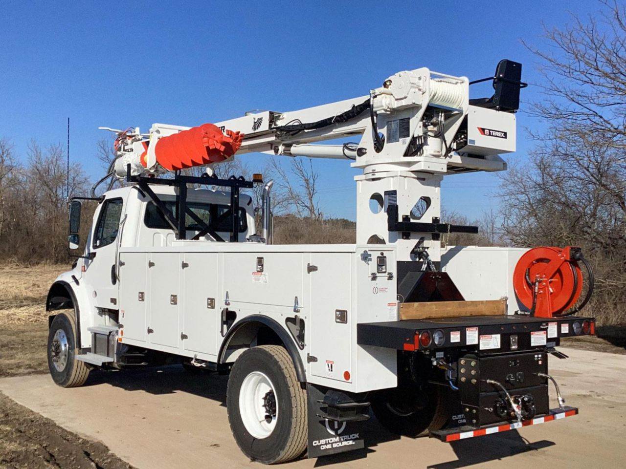 FOR SALE! A brand new Freightliner M2106 4x4 upfitted with a Terex Commander 4047 digger derrick. This vehicle is powered by a 300 hp...