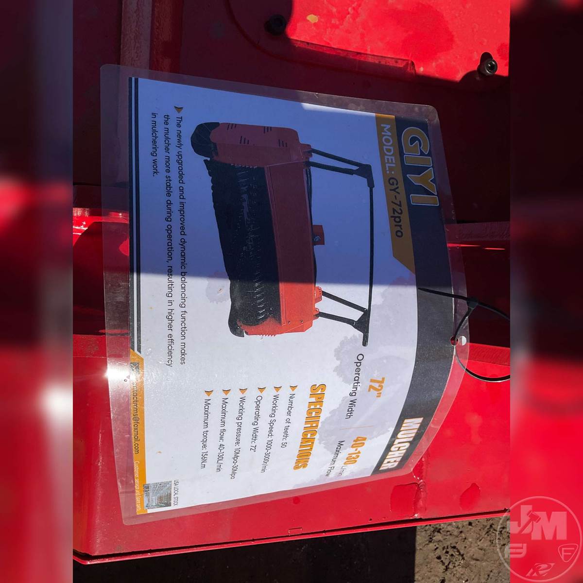 UNUSED 72†HYDRAULIC MULCHER,  40-130L/MIN MAXIMUM FLOW