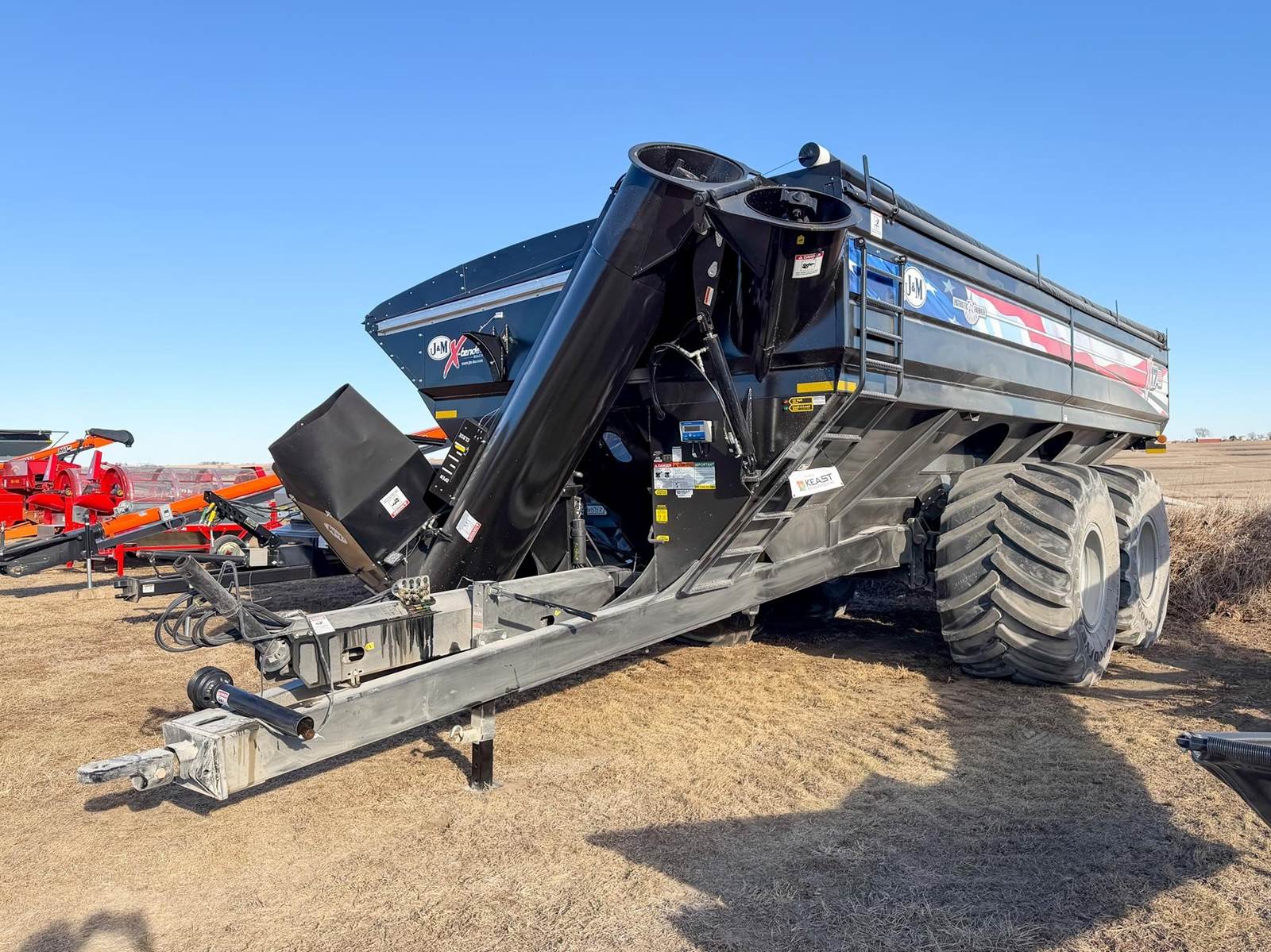 Enjoy $0 Down Financing with No Payments for 6 Months, Affordable Nationwide Delivery, and Unbeatable Prices! New J&M 1732-22D Inline Dual Grain Cart with a 1675 bushel capacity, 22" vertical auger, 20" horizontal auger, 790 bu/min unload rate, dual inline 1050 tires, GT400 scale system, and more!