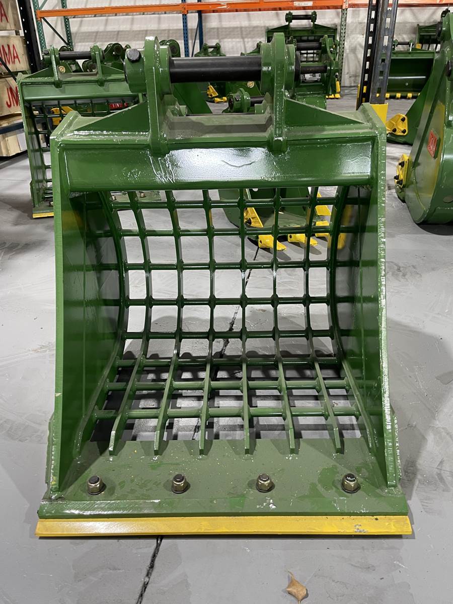 Transform your approach to material sorting and handling with the 24" Skeleton Bucket Bolt-On Edge for 4 - 5 Tons Mini Excavators. 40mm Pins. This premium 24" Skeleton Bucket Bolt-On Edge is designed to excel in separating debris and managing various materials, featuring a unique Reversible Bolt-On Cutting Edge for enhanced performance. Unrivaled Advantages: • Mini Excavator Compatibility: Seamlessly integrates with your equipment for optimized performance. • Maximum Strength: Constructed from AR400 Steel to withstand the rigors of demanding job sites. • Efficient Sorting: 6 precision-engineered tines, each 8 mm thick, ensure superior material separation. • Innovative Reversible Bolt-On Cutting Edge: Provides superior cutting ability and easy maintenance for extended service life. • Versatile Application: Ideal for sifting soil, handling aggregates, and managing construction debris. • Enhanced Features: 3x Reinforced Side Plates to boost overall productivity and durability in challenging environments. Experience the pinnacle of skeleton bucket technology with the added benefit of a Reversible Bolt-On Cutting Edge. The 24" Skeleton Bucket Bolt-On Edge for 4 - 5 Tons Mini Excavators. 40mm Pins isn't just a tool – it's your pathway to unmatched efficiency and adaptability in material handling.