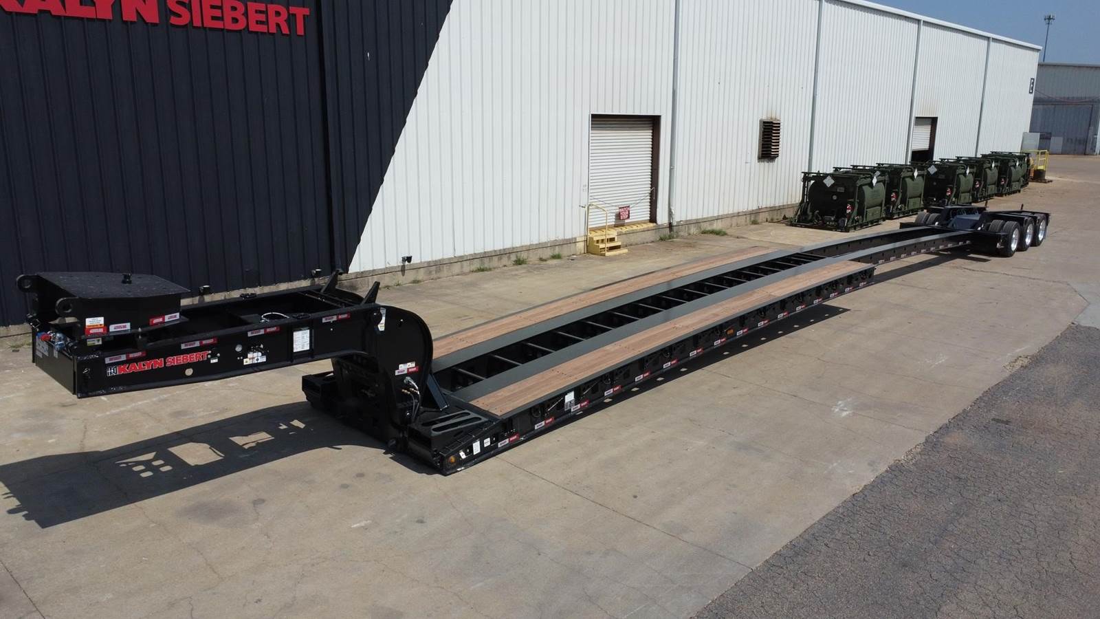 ON ORDER DUE 1-2026 ROBSTOWN, TX 2026 Kalyn Siebert 55 ton extendable super stretch, 96" swing clearance (flip neck prepped for a 36" flip box), self contained pony motor, 30' well extends to 60', 102" wide, 20" loaded deck height, 6" ground clearance, swing out outriggers, 2" apitong decking outer bays only, 6 pair of d-rings on outer beam, 2 pair in inner beam, 275 tires on outside aluminum wheels, air lift 3rd axle, tire inflation system, air lift 3rd axle, manual 3rd flip axle INCLUDED, rear amber strobe lights, black in color