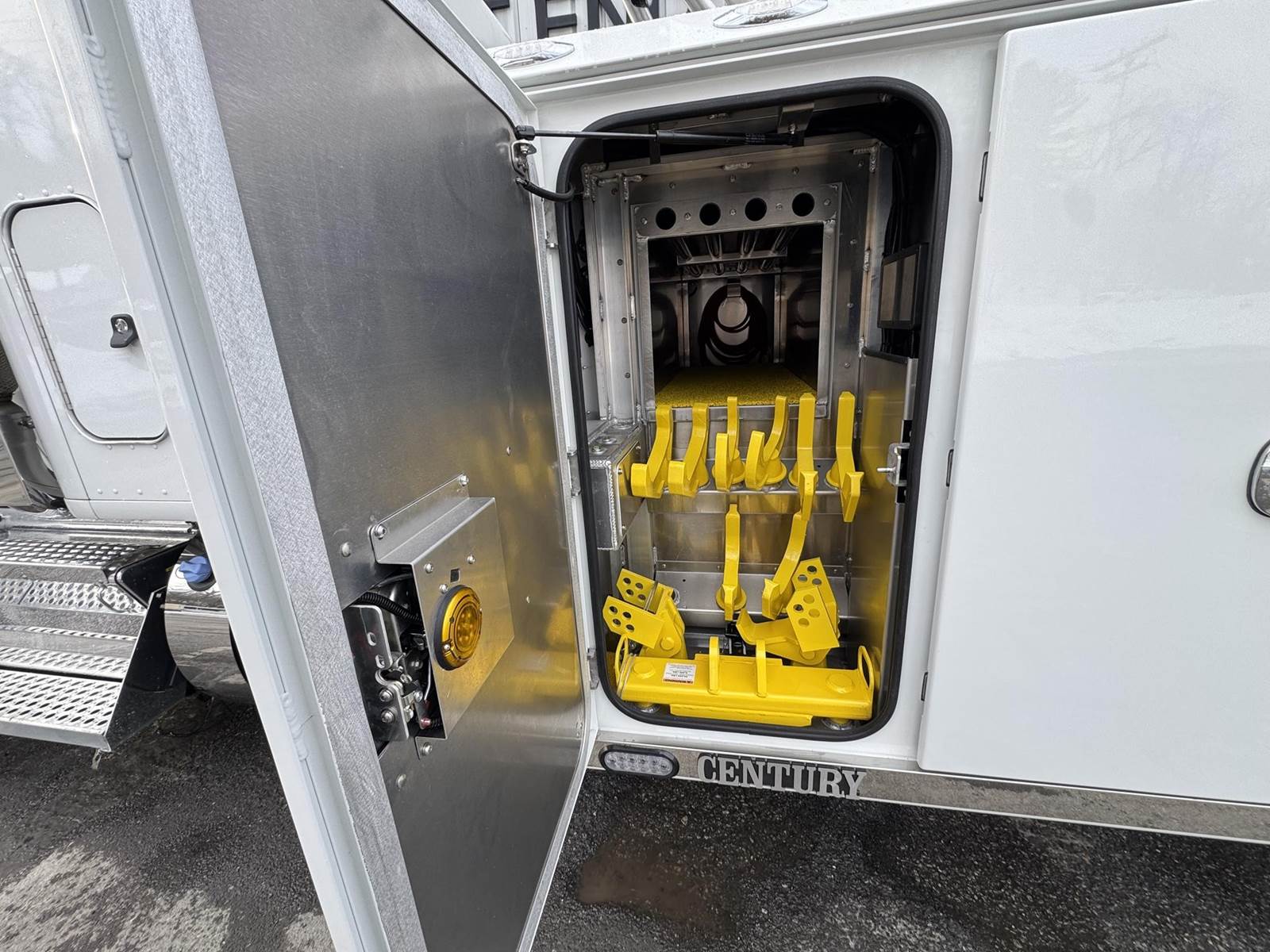 Century 5130-25 Ton Integrated Wrecker, 206” Aluminum Body Conf, Xtreme 3” Aluminum Pylon, 13K Bus Tire Lift, Whelen 72” Light Bar, 10”x10” Whelen Micro Edge, Whelen M6’s, Chain & Strap Kit, Snatch Blocks, Dual BU Camera, 7 Drawer TB, Millenium Lights and many other options… center section painted gray
