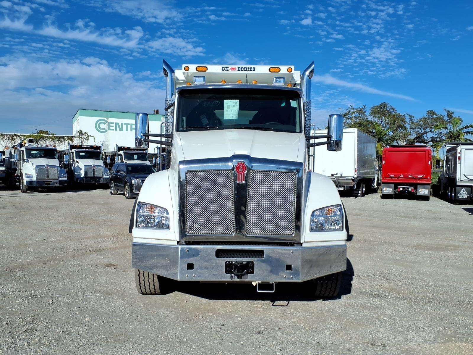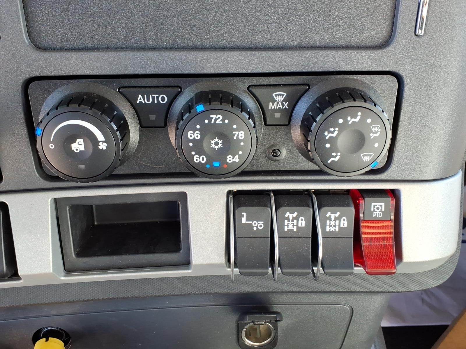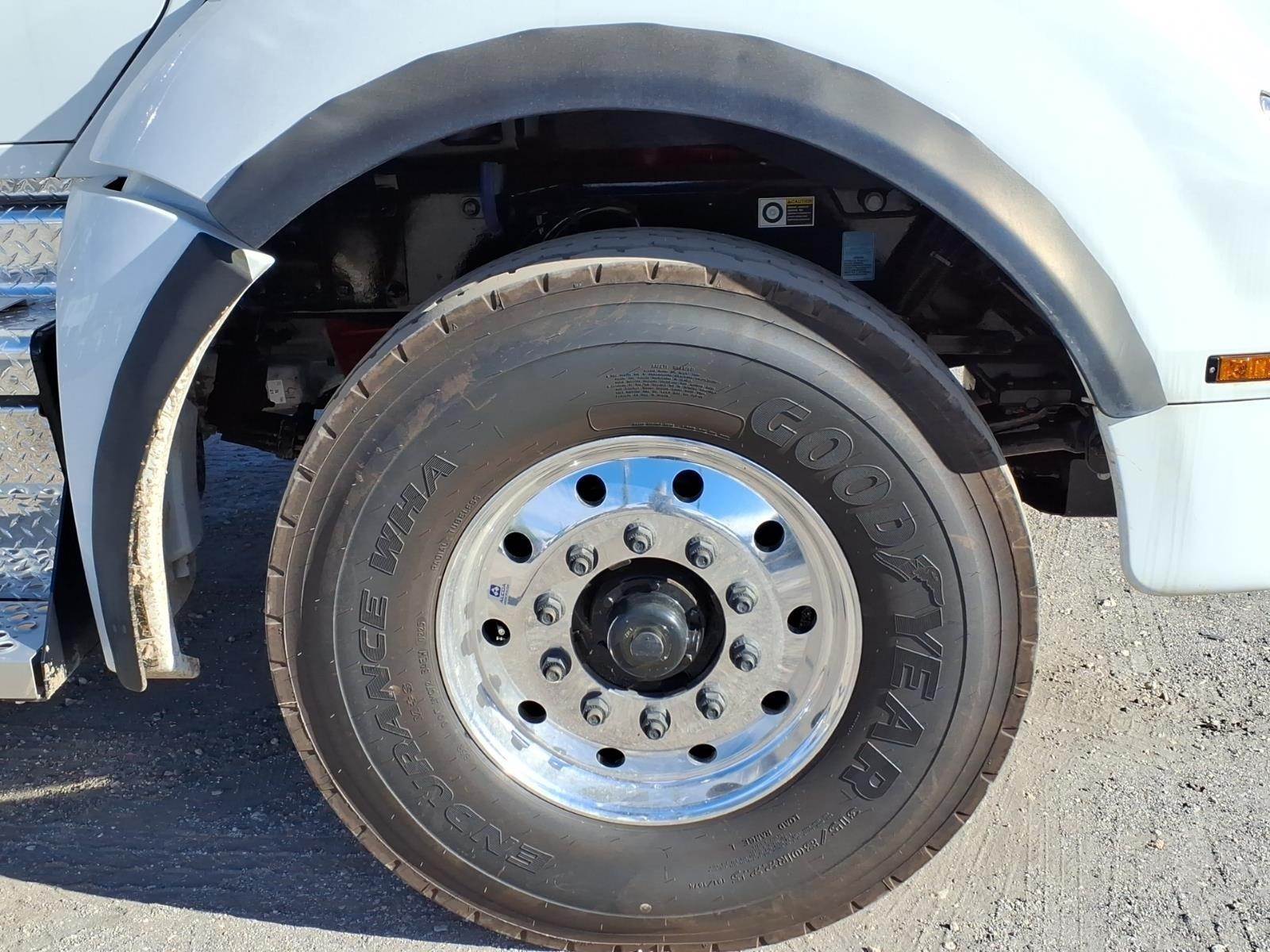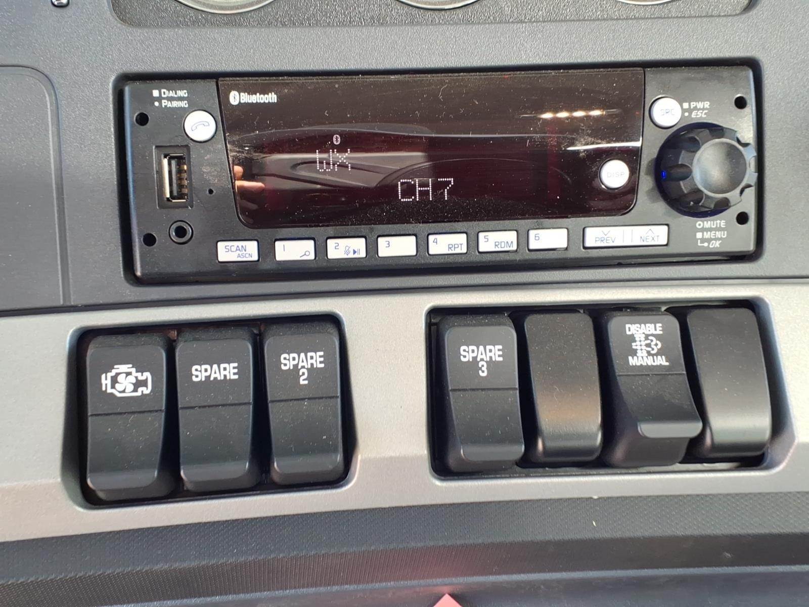 Kenworth Smart Wheel, power door locks, power windows, tilt/telescoping steering wheel, heated power mirrors, air conditioning with auto temperature control, AM/FM/WB/USB radio with Bluetooth, CB installation kit, air horn, exterior stainless steel sunvisor, polished aluminum bumper, dual LED floodlights, TruckTech+ remote diagnostics, 15" digital display main instrument package.
