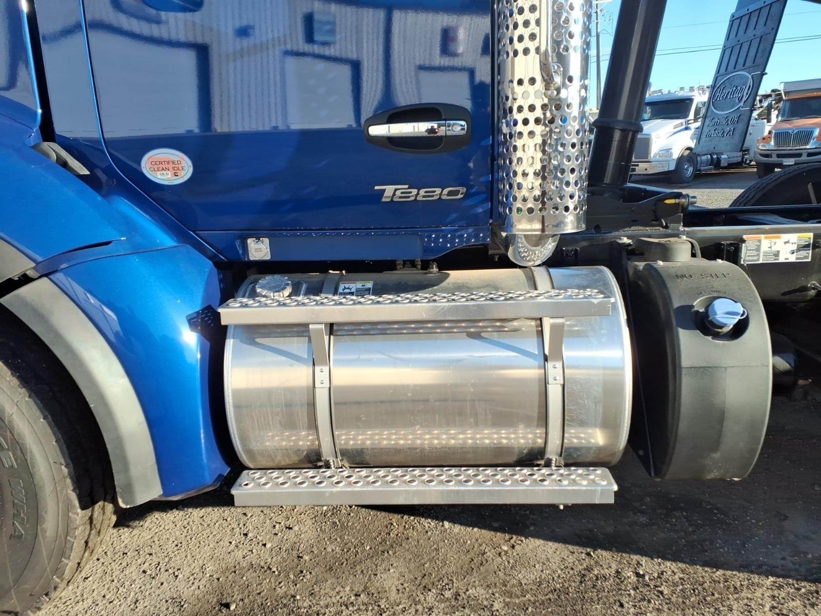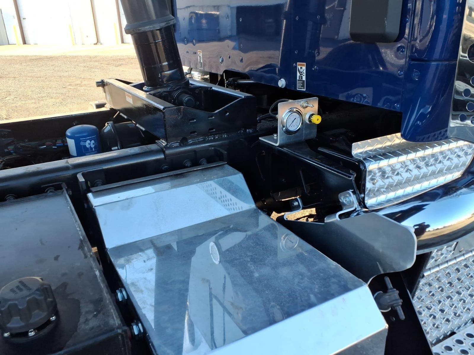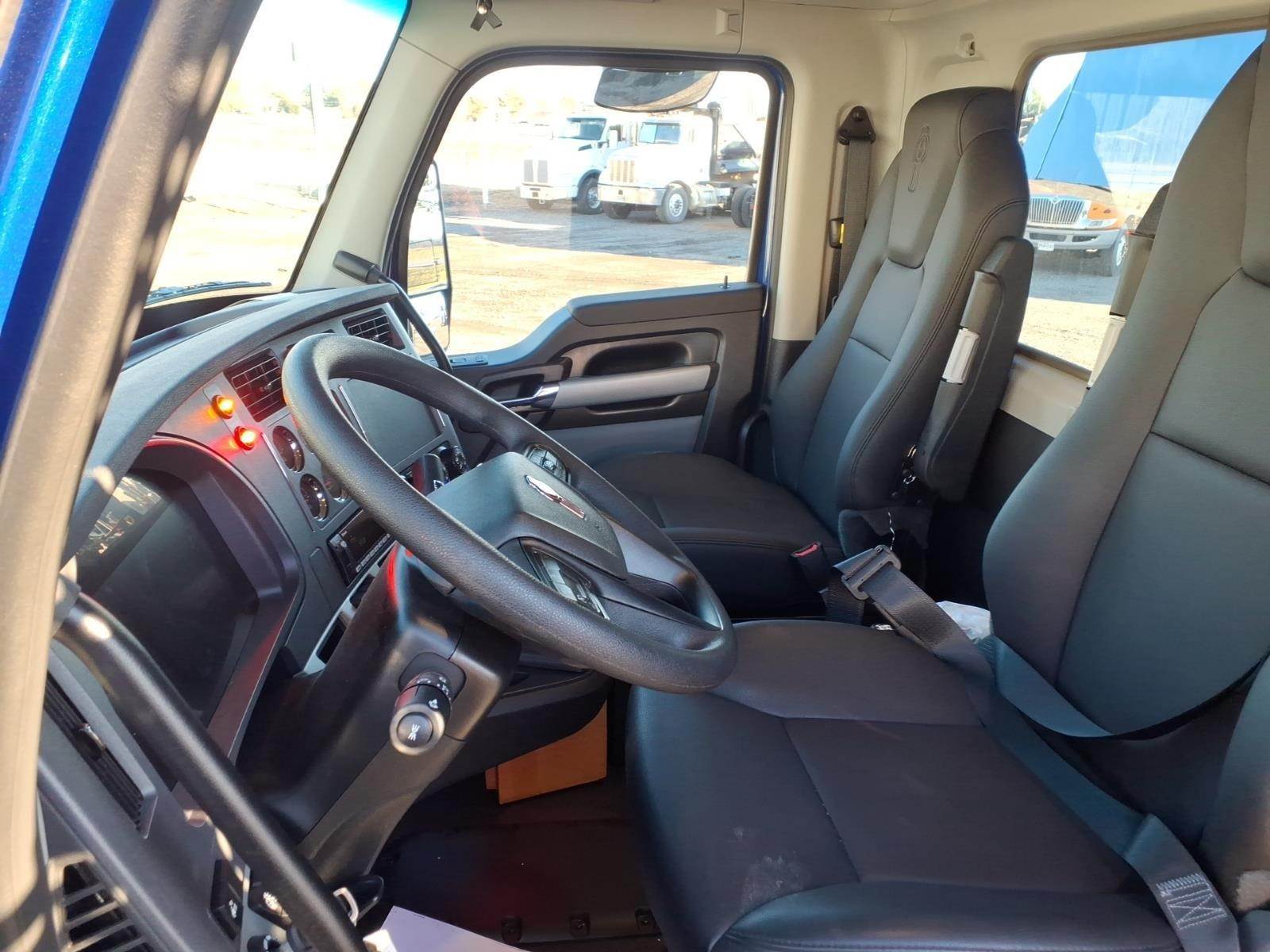 Power windows, power door locks, tilt/telescoping steering wheel, Kenworth Smart Wheel with integrated radio and cruise controls, heated power mirrors, air conditioning with auto temperature control, 15" digital display main instrument package, Kenworth radio DEA710 AM/FM/WB/USB with Bluetooth, CB installation kit, dual air horns, exterior stainless steel sun visor, polished aluminum tapered channel front bumper, dual chrome exhaust elbows
