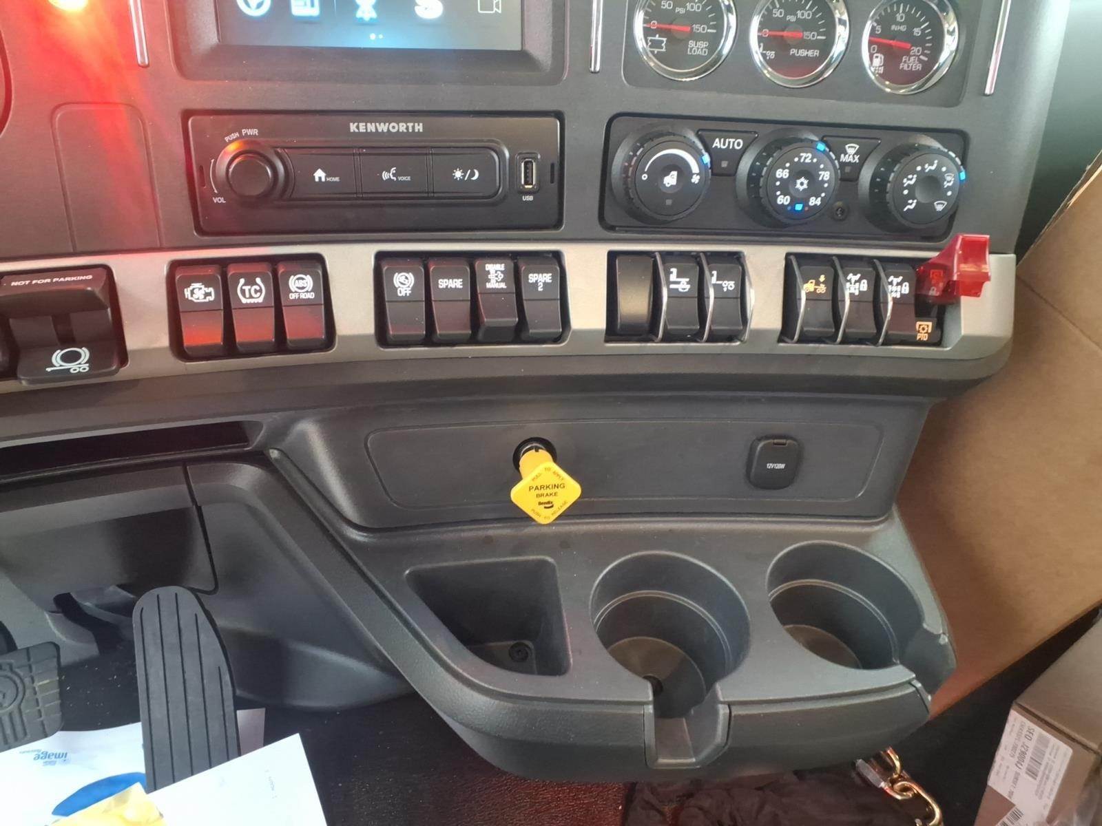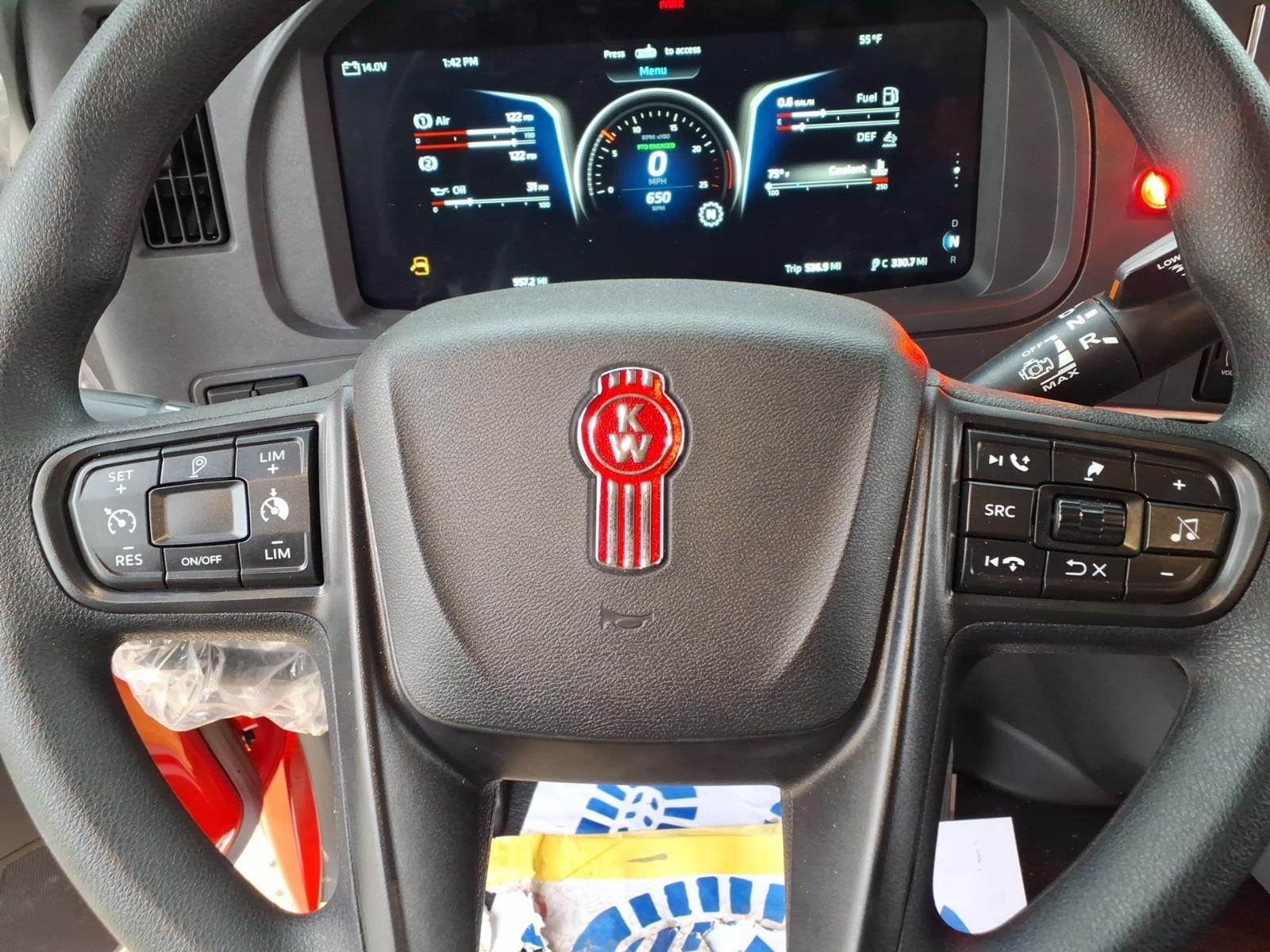 Options & Features: Power door locks, Tilt/telescoping steering column, Premium Audio System, Navigation, Apple CarPlay, CB radio installation kit, Kenworth Smart Wheel