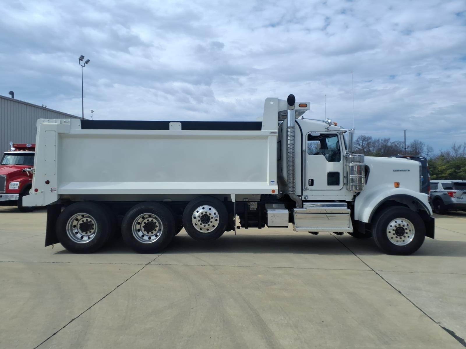 Exterior Chrome/Polished Items: Texas Square Chrome Bumper, Dual 15-inch Stainless Steel Cowl Mounted Air Cleaners, Dual Stainless Steel Air Cleaner Fairings, 7-inch Dual 36-inch Curved Tailpipes, Polished Aluminum Battery Box Cover, Polished Fuel Tank, Polished DEF Tank Cover, Polished Fuel Tank Straps, Stainless Steel Exterior Sun Visor, Chrome Beading around windows, Dual Stainless Steel Heated Power Mirrors, Stainless Steel Look-down Mirror, Polished Wheels