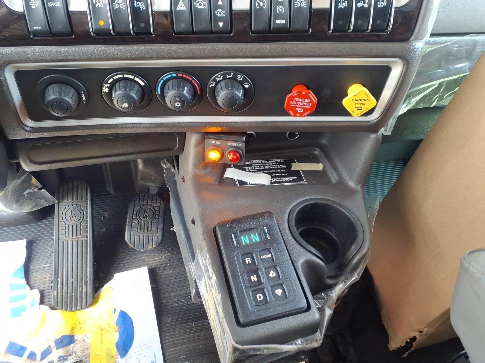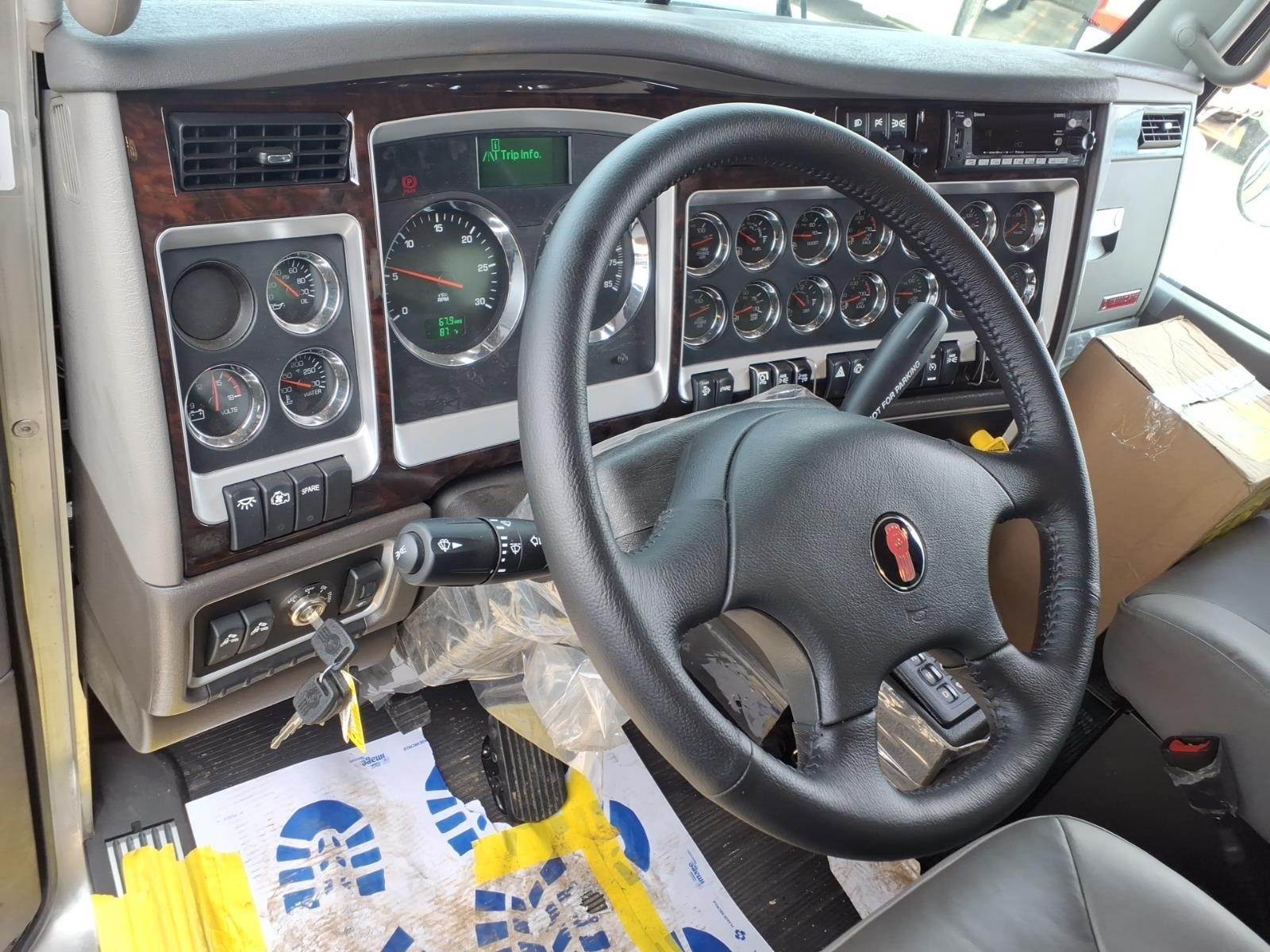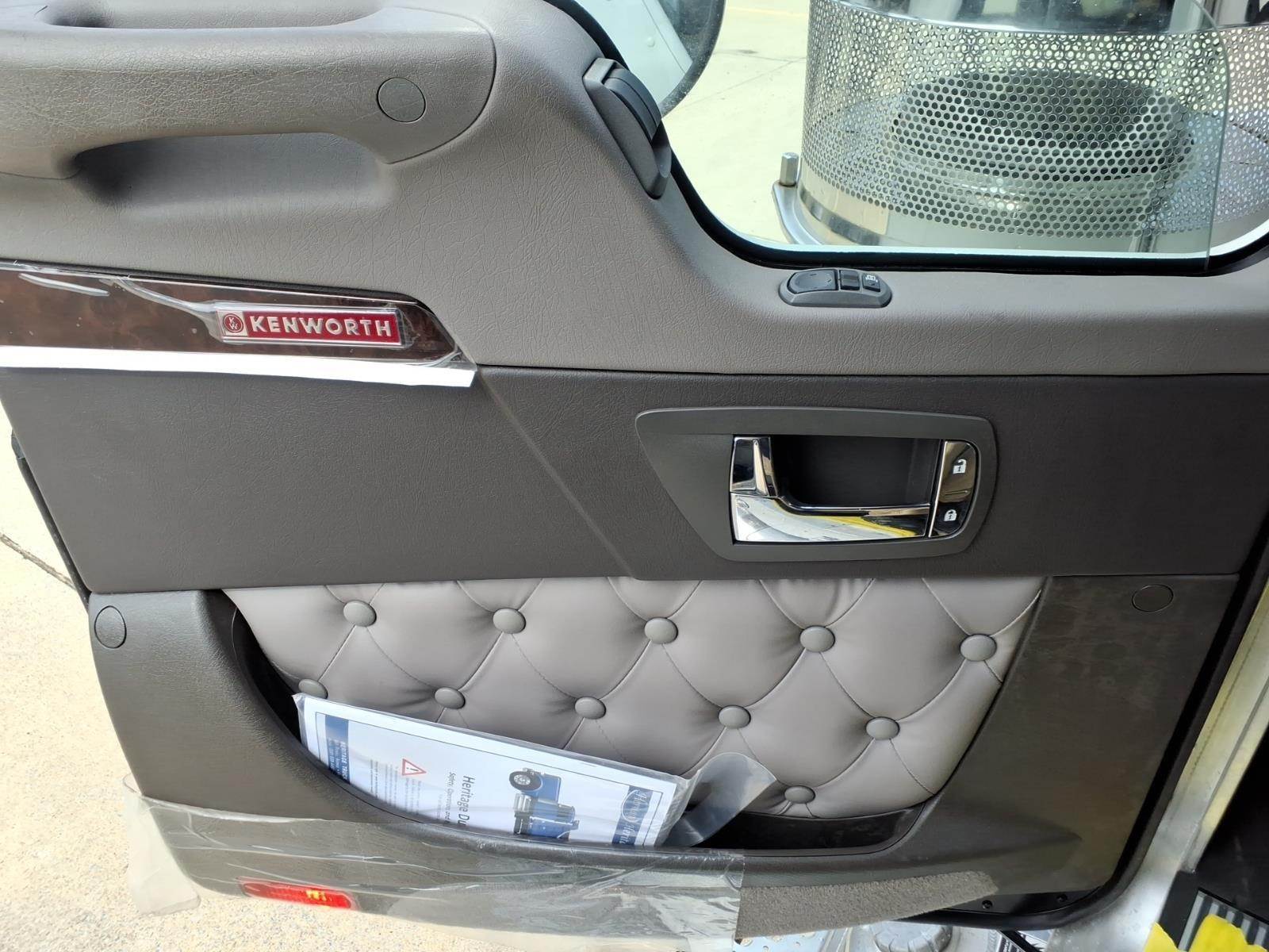 Options & Features: Power windows, power door locks, tilt/telescoping steering wheel, CB radio installation kit, heated driver seat, leather-wrapped Smart Wheel, Kenworth Driver Information Center, Kenworth TruckTech+, AM/FM/WB/USB Radio with Sirius-XM and Bluetooth, electric door locks, dual roof-mounted air horns, back-up lights, LED marker lights, fender-mounted LED turn signals