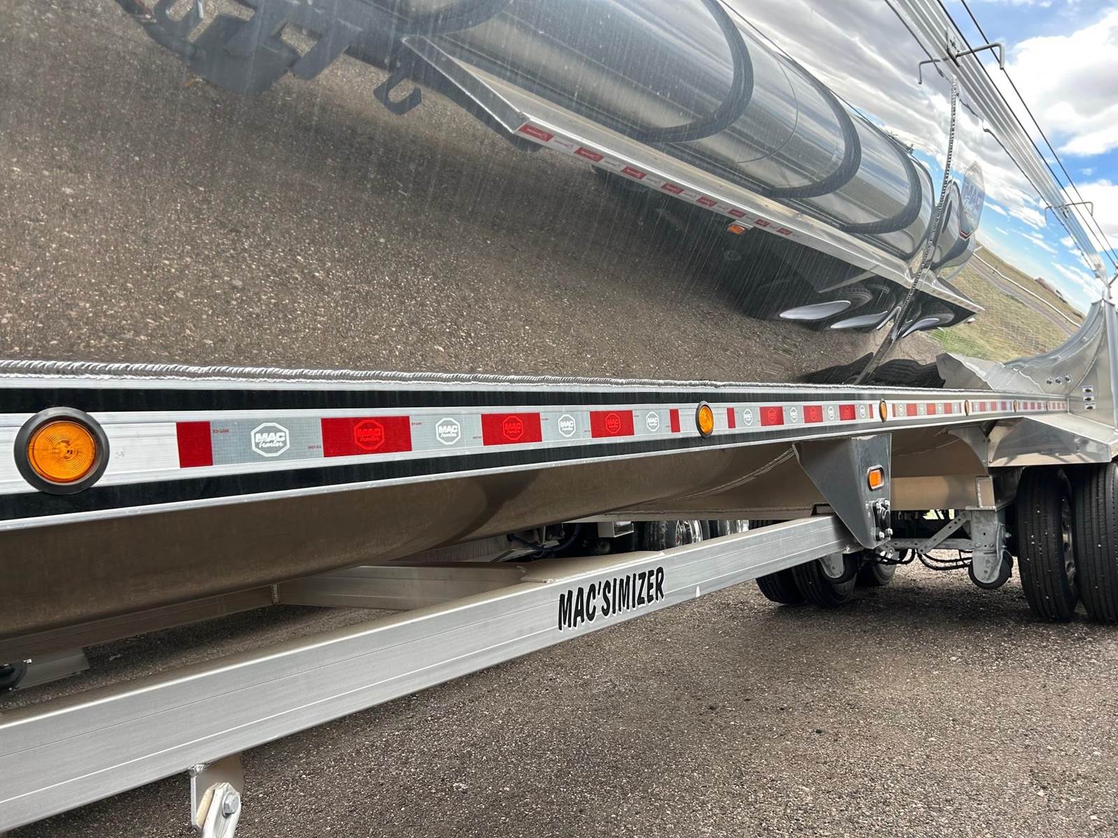 2026 MAC Macsimiser Frameless Aluminum End Dump, Half Round Tub, 39', 2-Speed Landing Gear, Factory Installed Liner, 56" Sides, 43 Cu Yds Capacity, Electric Slide Tarp, Top Hinge Gate, Rubber Sealed Gate, Safety Twist Locks, 102" Wide Axles, Closed Tandem Air Ride, Front Lift Axle, 8 Aluminum Wheels, 11R24.5 Tires, Rear Fenders, Rear Road Side Ladder, 9 Marker Lights, 3 Rear S/T/T Lights,