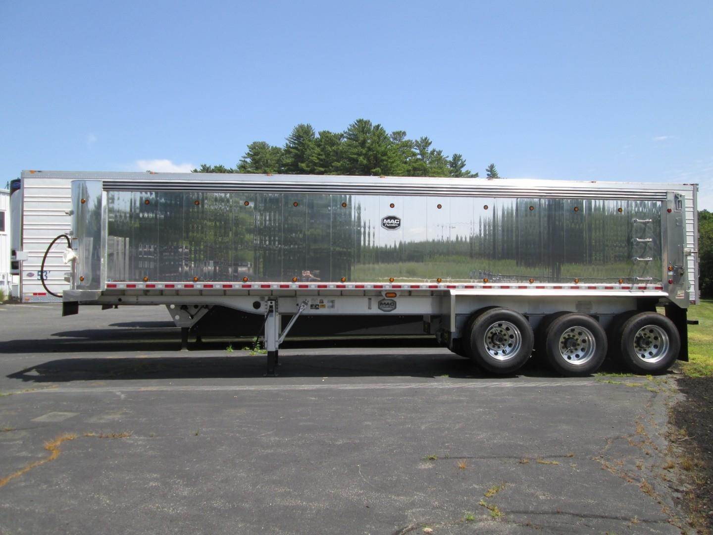 This\ Mac trailer measures 34' x 96" and features 64" sides with approximately 49 cubic yards of capacity, a tri-axle configuration with a...