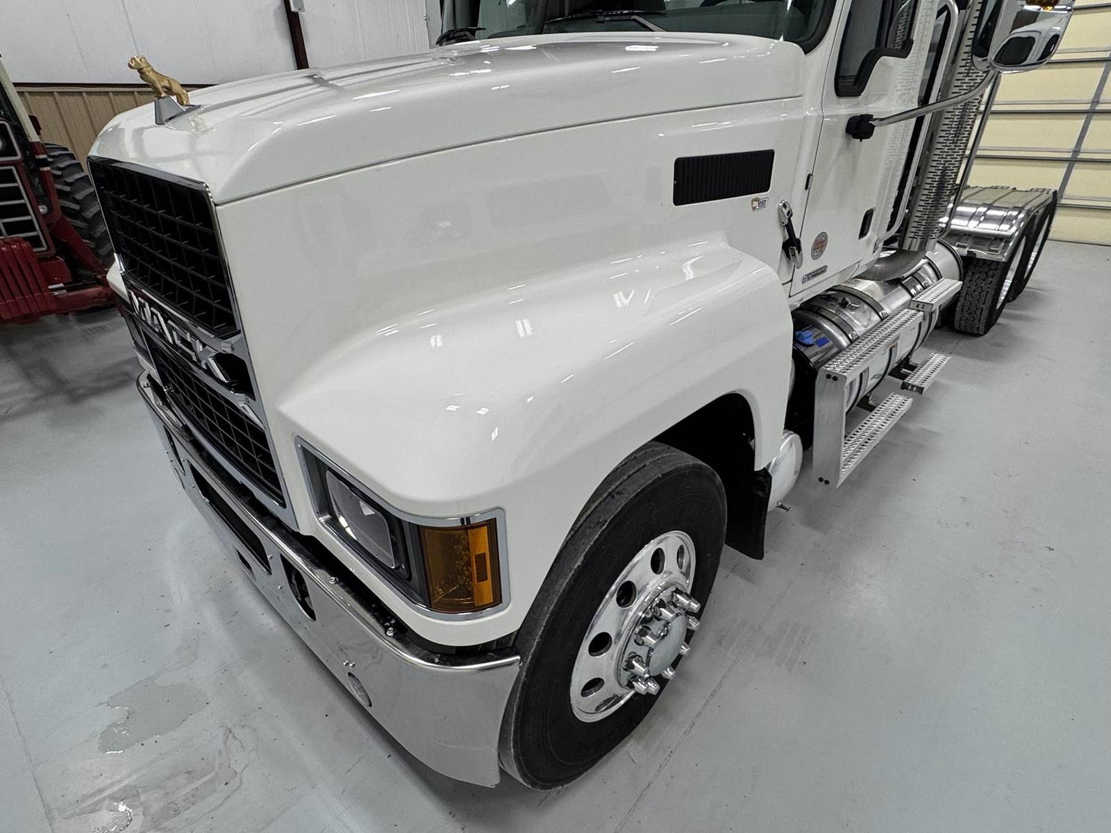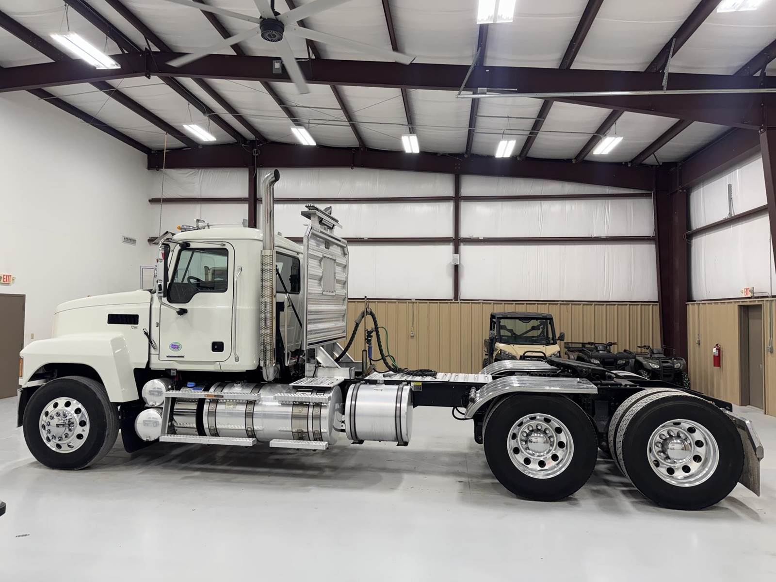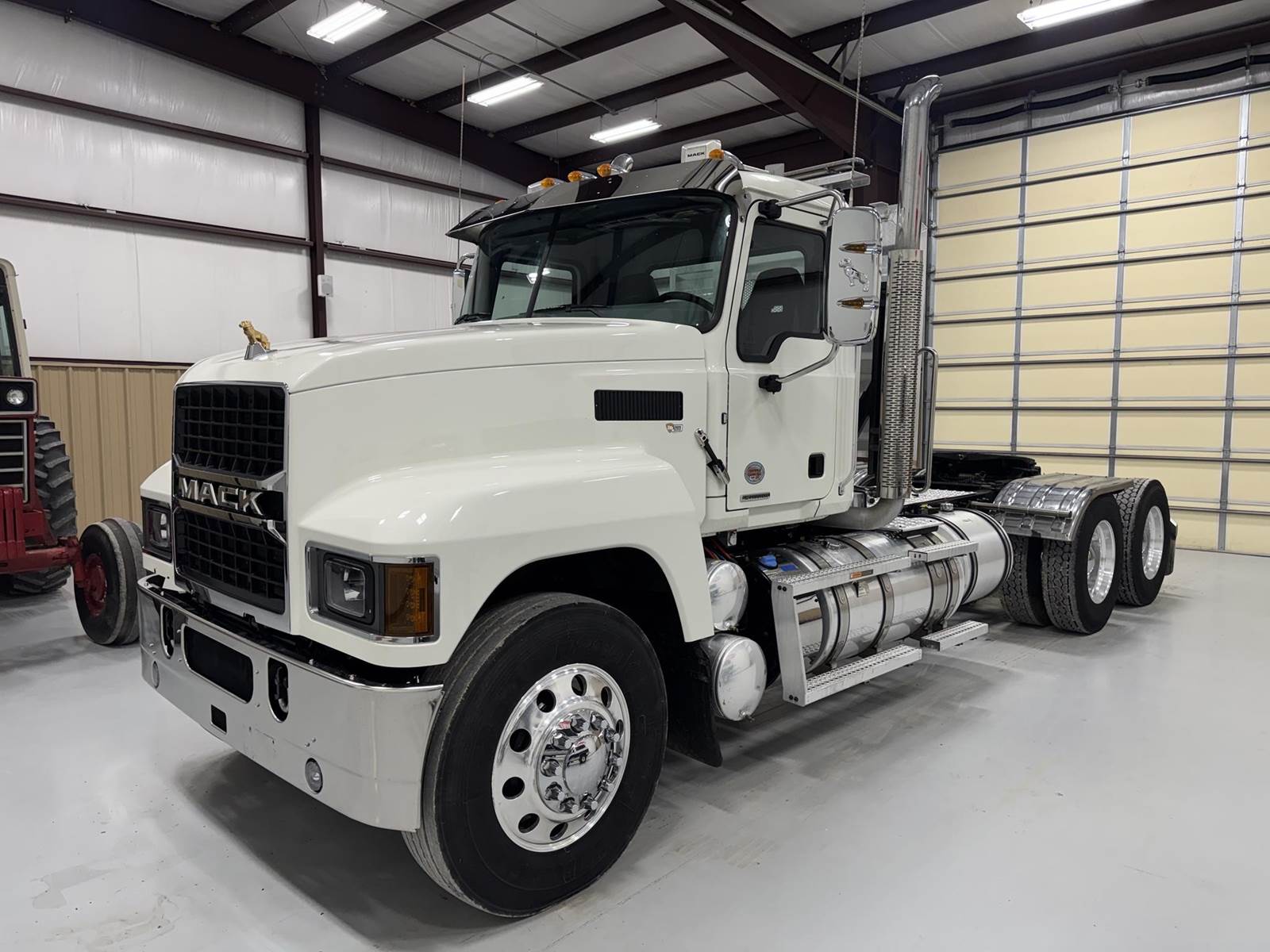 2026 MACK PI64T DAY CAB, MP8 ENGINE 505 HP, AUTOMATED MDRIVE TRANSMISSION, PTO, DUAL LINE WETKIT, DUMP TOWER, HEADACHE RACK STROBES LIGHTS, 14,320 FRONTS 46K REARS, SLIDING FIFTH WHEEL, 235" WB, ALUMINUM WHEELS, A/C HEAT RADIO, DOUBLE STACK!! GOLD DOG MACK!! EXCELLENT CONDITION.