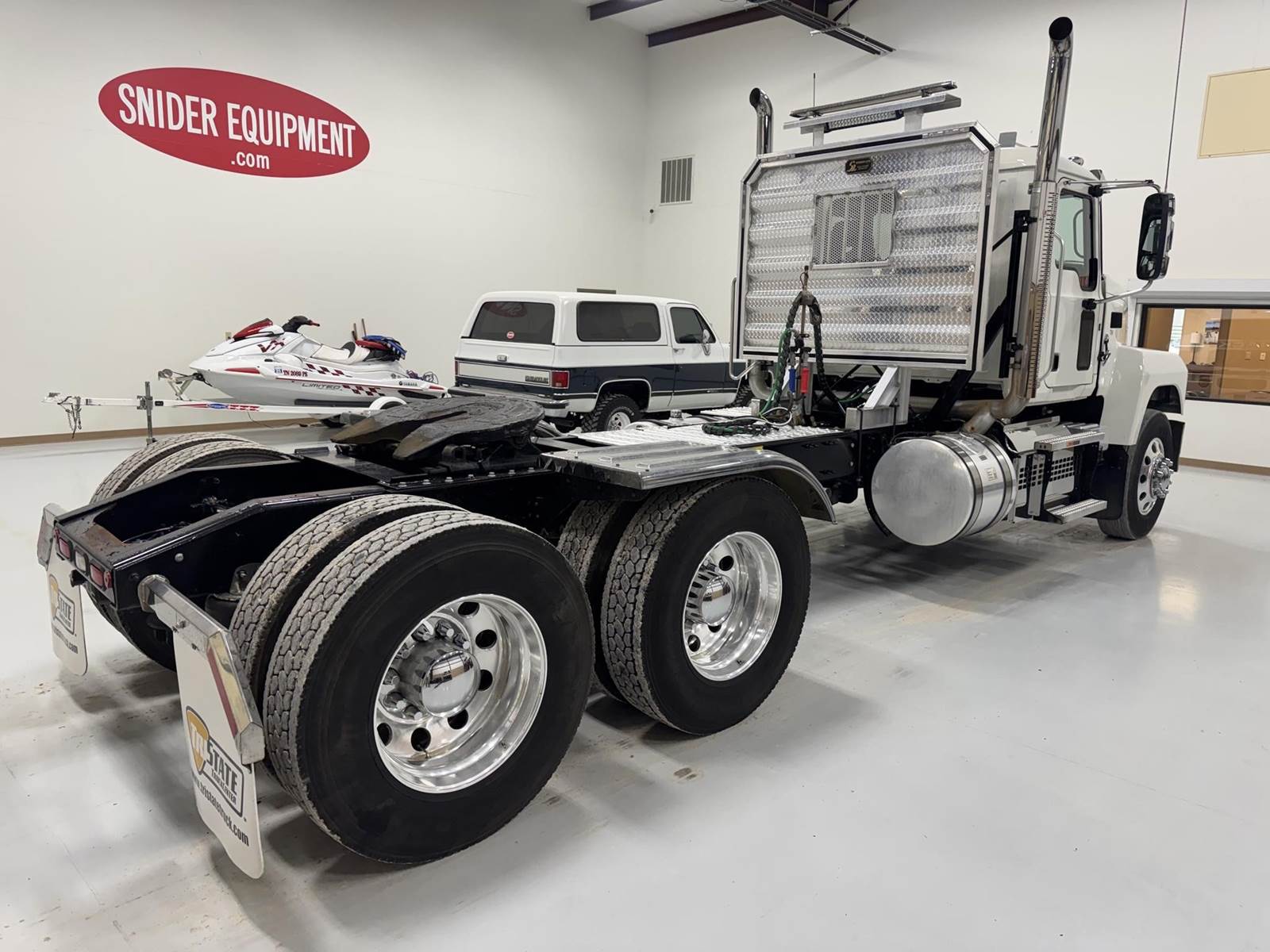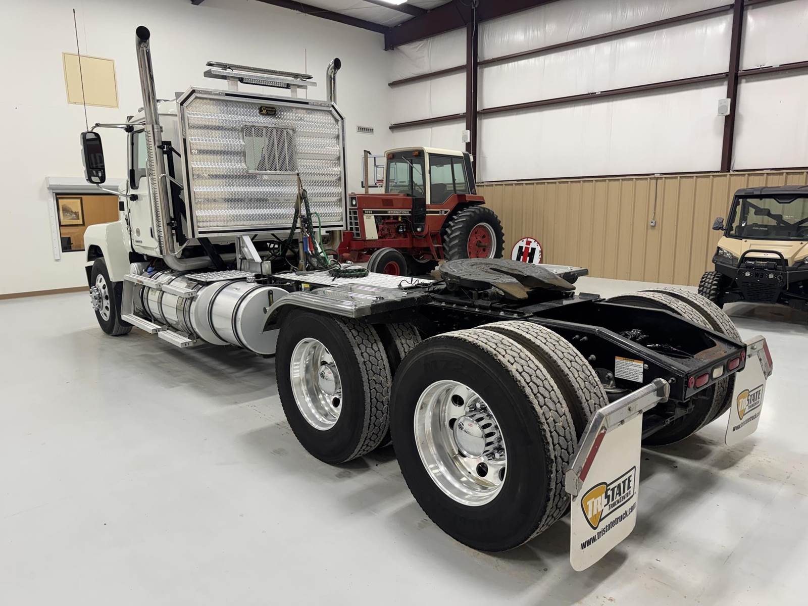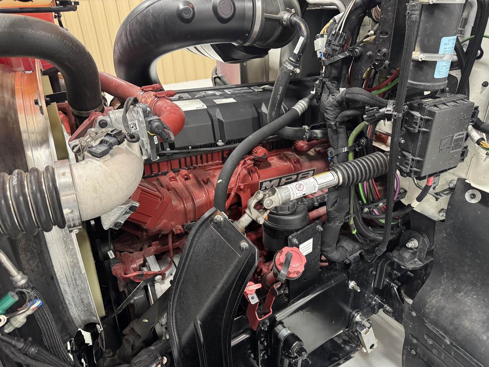 2026 MACK PI64T DAY CAB, MP8 ENGINE 505 HP, AUTOMATED MDRIVE TRANSMISSION, PTO, DUAL LINE WETKIT, DUMP TOWER, HEADACHE RACK STROBES LIGHTS, 14,320 FRONTS 46K REARS, SLIDING FIFTH WHEEL, 235" WB, ALUMINUM WHEELS, A/C HEAT RADIO, DOUBLE STACK!! GOLD DOG MACK!! EXCELLENT CONDITION.