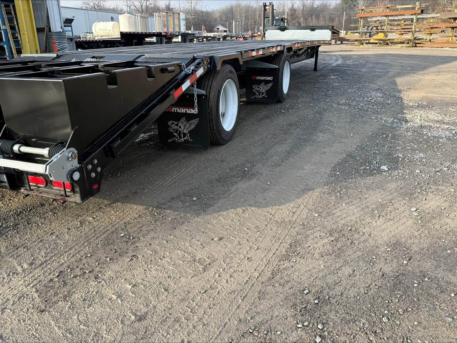 We have a brand new Manac drop deck flatbed at the factory, looking for a new home!