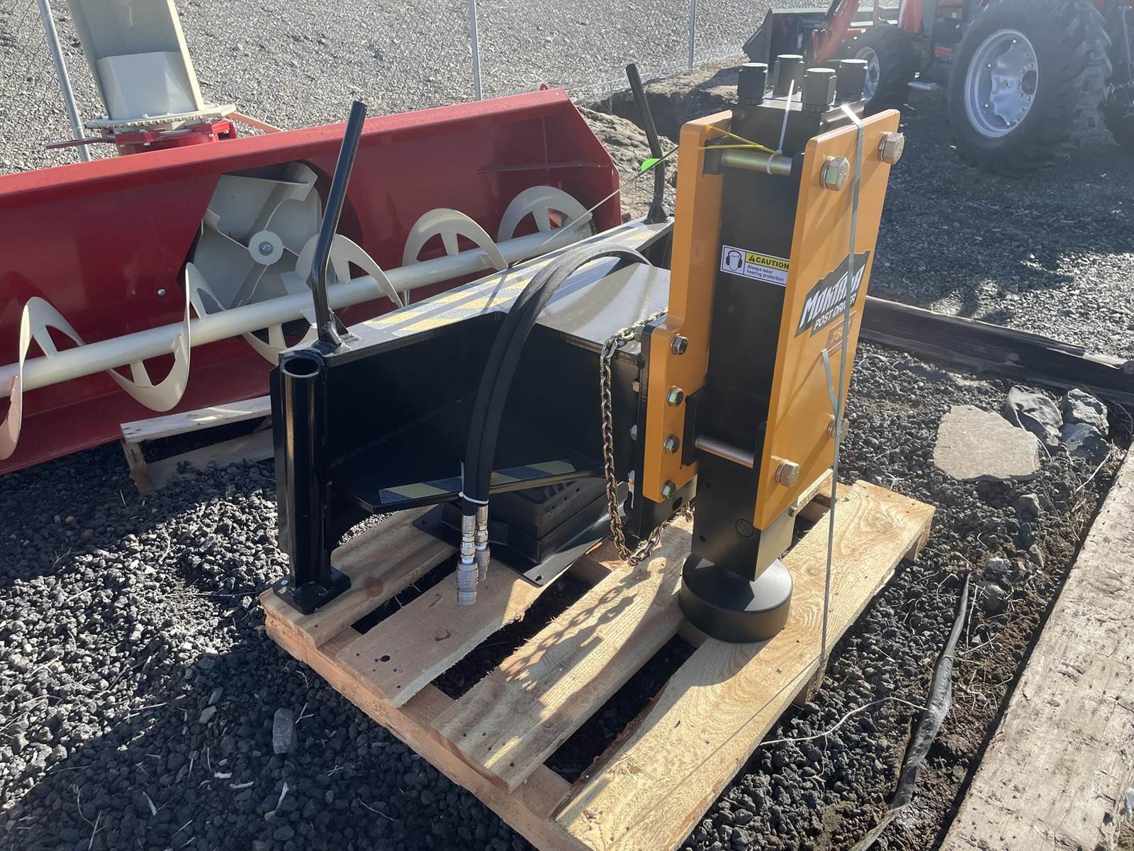 POST DRIVER, SKIDSTEER MOUNT, INCLUDES: DOMED TOOL, FLAT TOOL, CONCRETE POINT, CHAIN, NITROGEN BOTTLE, NITROGEN CHARGE KIT, HYDRAULIC HOSES,...