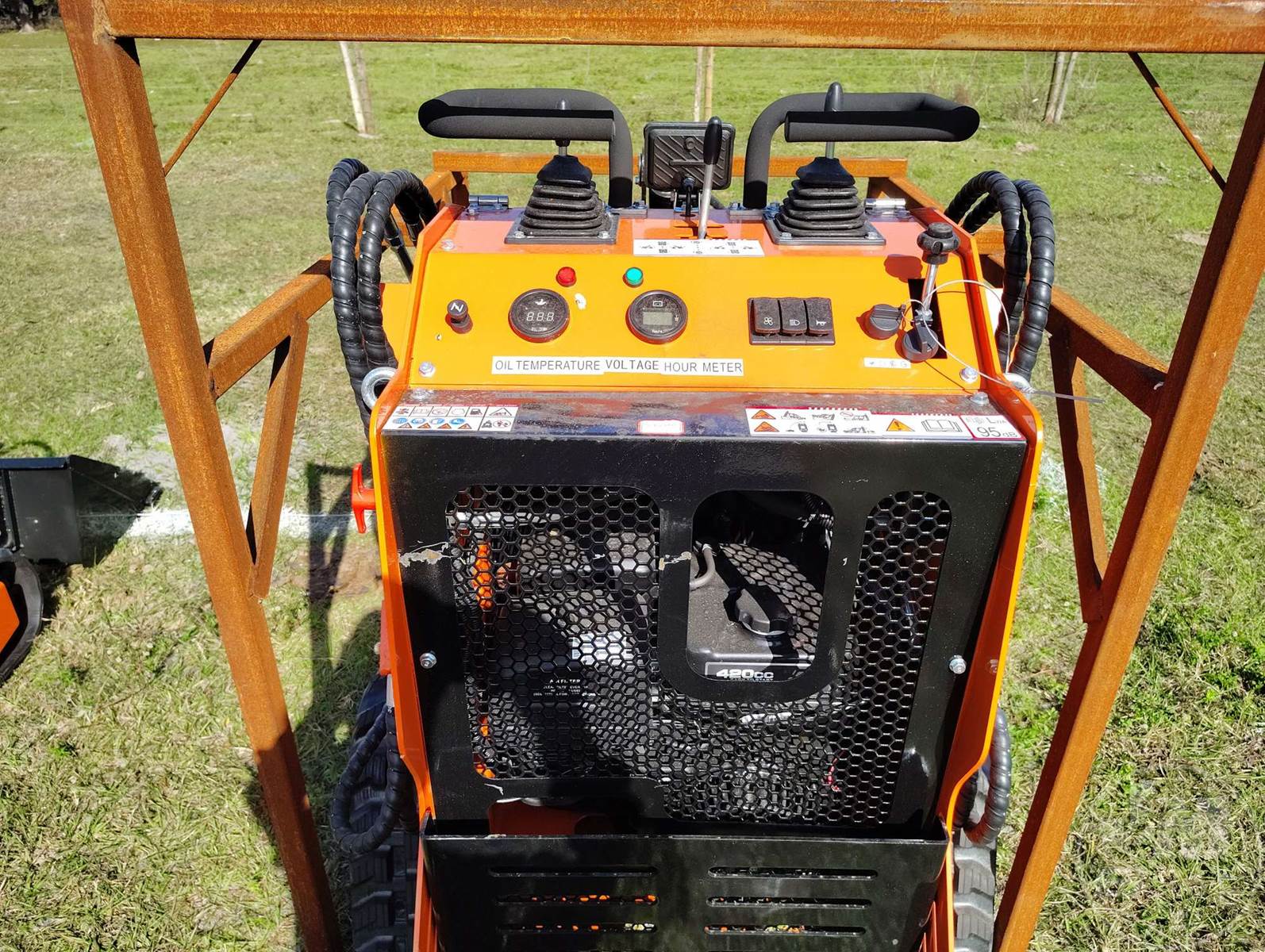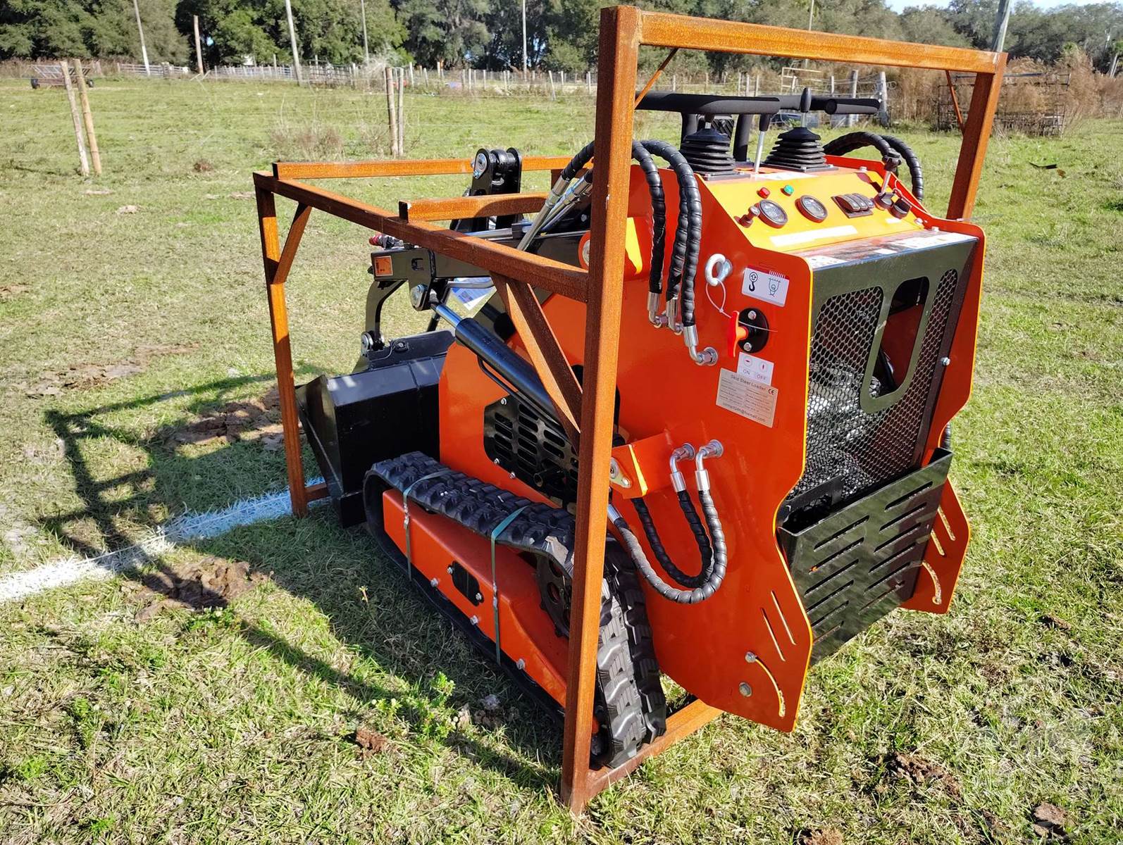 UNUSED STAND ON SKID STEER LOADER, Â MANUAL COUPLER, HAND CONTROLS, SMOOTH BUCKET, 40" BUCKET, ELECTRIC START, GASOLINEÂ , HOUR METER READS: 0