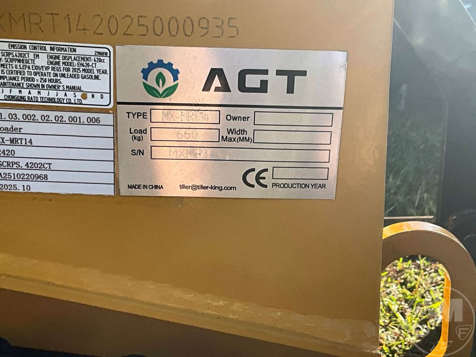UNUSED AGT STAND ON MULTI TERRAIN LOADER, Â MANUAL COUPLER, HAND CONTROLS, SMOOTH BUCKET, 7", RUBBER TRACKS, 23HP, GASOLINE ENGINE, 32" BUCKET, HOUR METER READS: 0