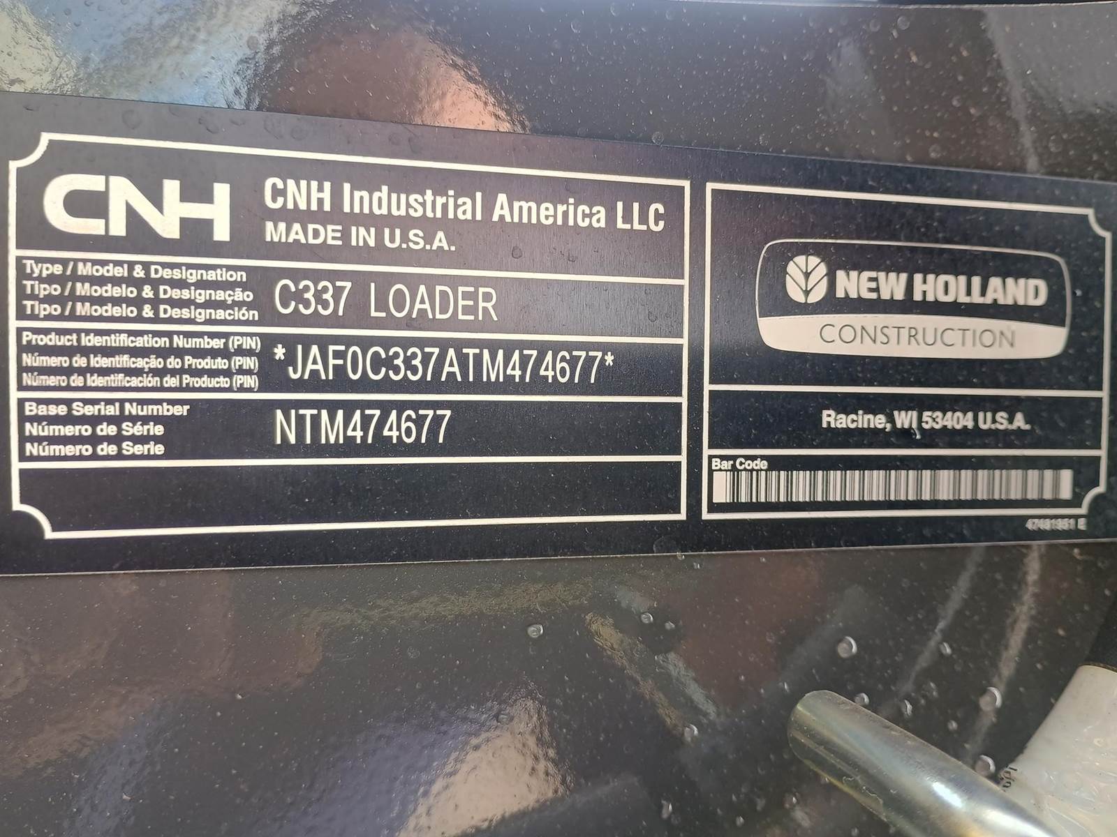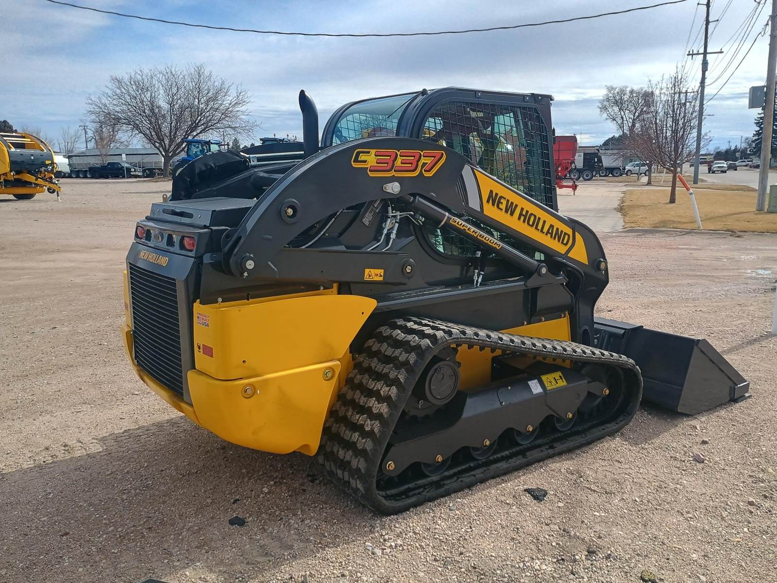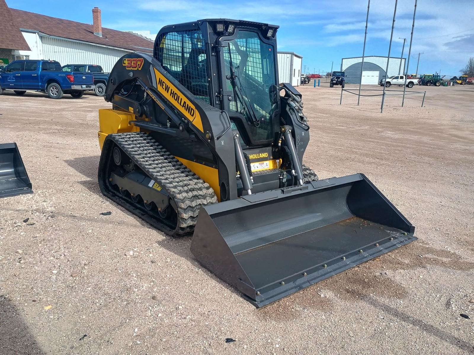 2026 NEW HOLLAND C337 COMPACT TRACK LOADER, CAB WITH HEAT, AIR, AND RADIO. LCD DISPLAY, REAR FACING CAMERA, GLASS FRONT DOOR, AIR RIDE SUSPENSION CLOTH SEAT WITH HEAT, LAP BAR AND SEAT BELT. E-H CONTROLS, ISO/H SELECTABLE, HYDRAULIC COUPLERS, HI-FLOW HYDRAULICS, ENGINE BLOCK HEATER, BATTERY DISCONNECT, 74HP, 4 CYLINDER DIESEL ENGINE. 17.7" WIDE TRACKS, 84" LOW PROFILE EXTENDED BUCKET W/ CUTTING EDGE, TELEMATICS PACKAGE, 3700# 50% TIP, 2590# 35% TIP, 131.1" MAX LIFT HEIGHT. CALL FOR PRICING