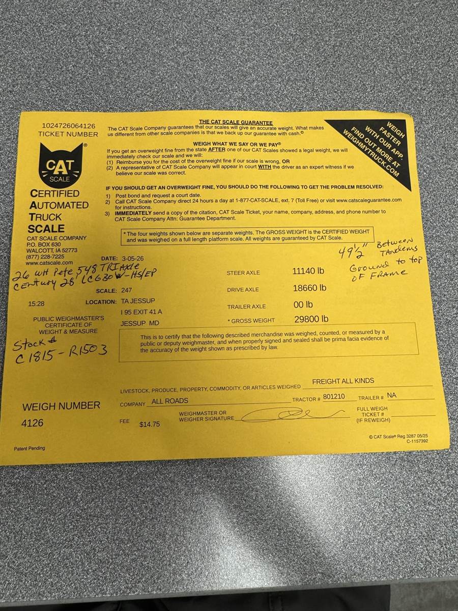 Century 28’ LCG30 (30K Deck) Wood Floor, 30K Winch w/Lodar wireless Controller, Inside & Outside Keyslots-24” on center, Galvanized Subframe, Hydraulic Stabalizer with Extendable Swivel Pintle, 2-49” Aluminum Tool Boxes, Federal Allegiant LED Amber Light Bar, 4pc Amber LED Strobe Lights, Work Lights, Trailer Hook Up Package