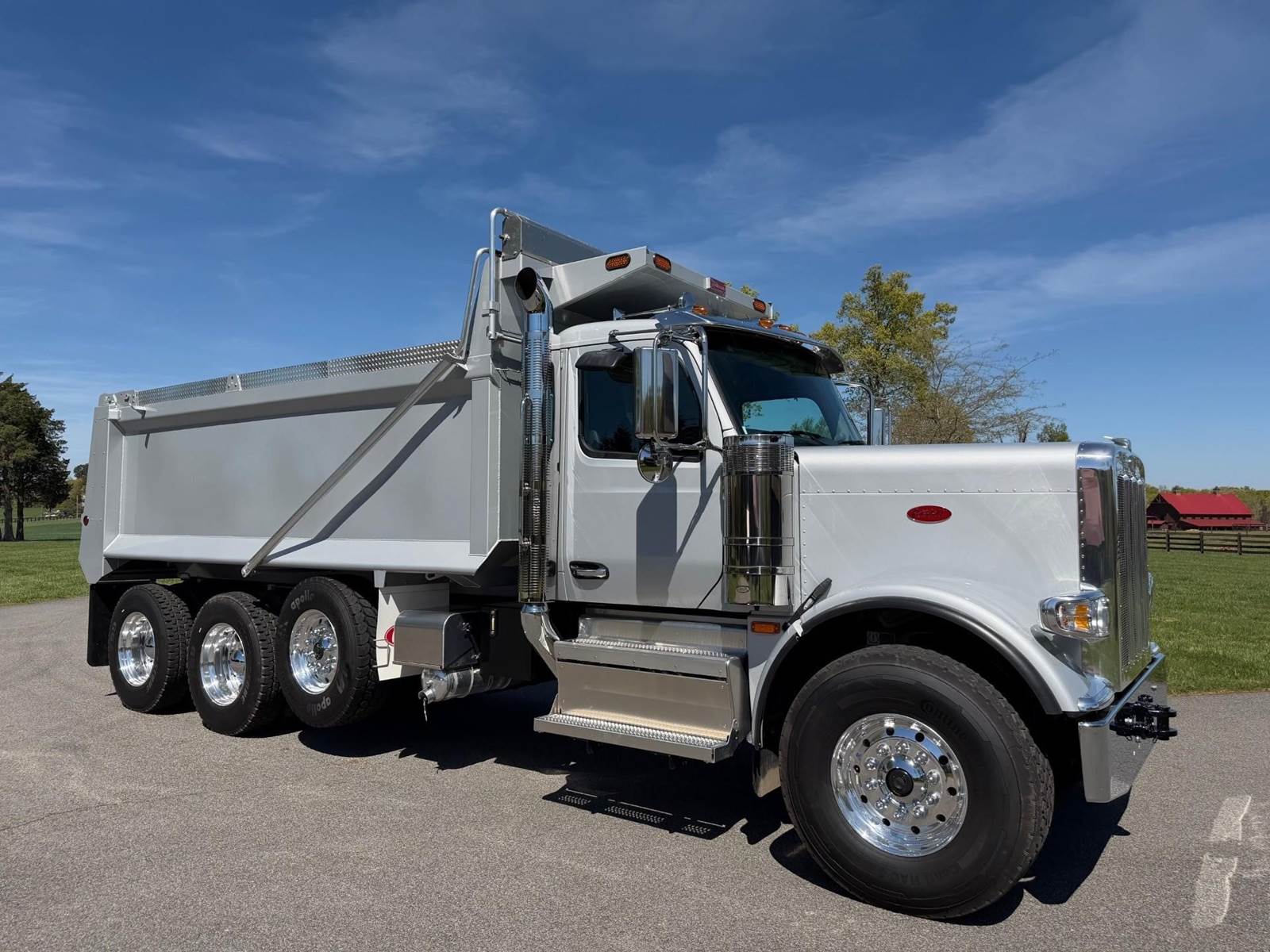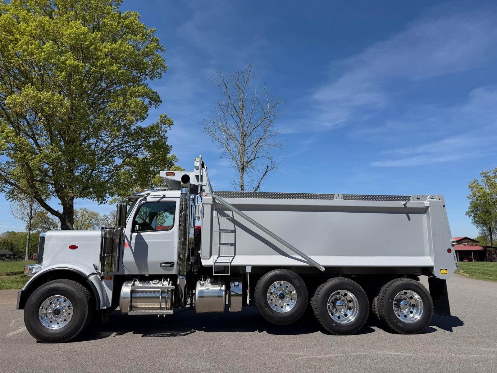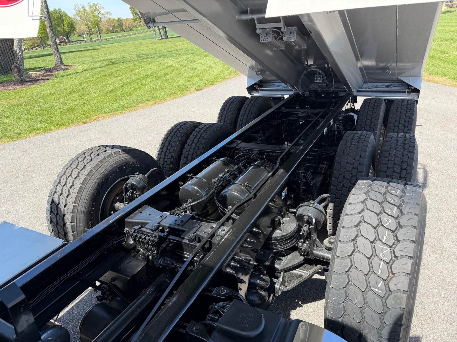 Triaxle, 17.5' Bibeau Steel Dump w/54" Sides, High Lift Gate, MX13 Paccar 510 HP, 18 Speed, 4.10 Ratio, 3 Stage Engine Brake, AirTrac, Double Frame, 20K FA, 46K RA, 20K Steerable L/A, 240" WB, 22'4" Bridge, Dual Exhaust Dual Stainless Breathers, Dual P/S Boxes, Full Locking Rears, Air Tarp, Air/High Lift Tailgate, Pintle Hitch w/Air, 7 Prong Pole, (2) Chutes, P/S, A/C, AM/FM Bluetooth, Heated Mirrors, Cruise, Tilt/Tele Wheel, Dual High Back Heated/Cooled Seats, 80 Gallon Aluminum Fuel Tank, 425/65R22.5 Steer Tires on Aluminum Wheels, 11R24.5 Drive Tires on All Aluminum Wheels, Chrome Bumper, IN SERVICE DATE 1/12/26, 1 YR/100K BASIC WARRANTY, 2 YR/250K STANDARD ENGINE WARRANTY, 5 YR/350K MX EMISSIONS WARRANTY, 5 YR/100K EPA EMISSIONS WARRANTY, 5 YR/500K EATON TRANSMISSION WARRANTY