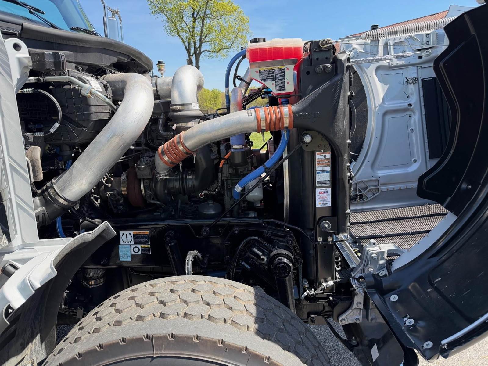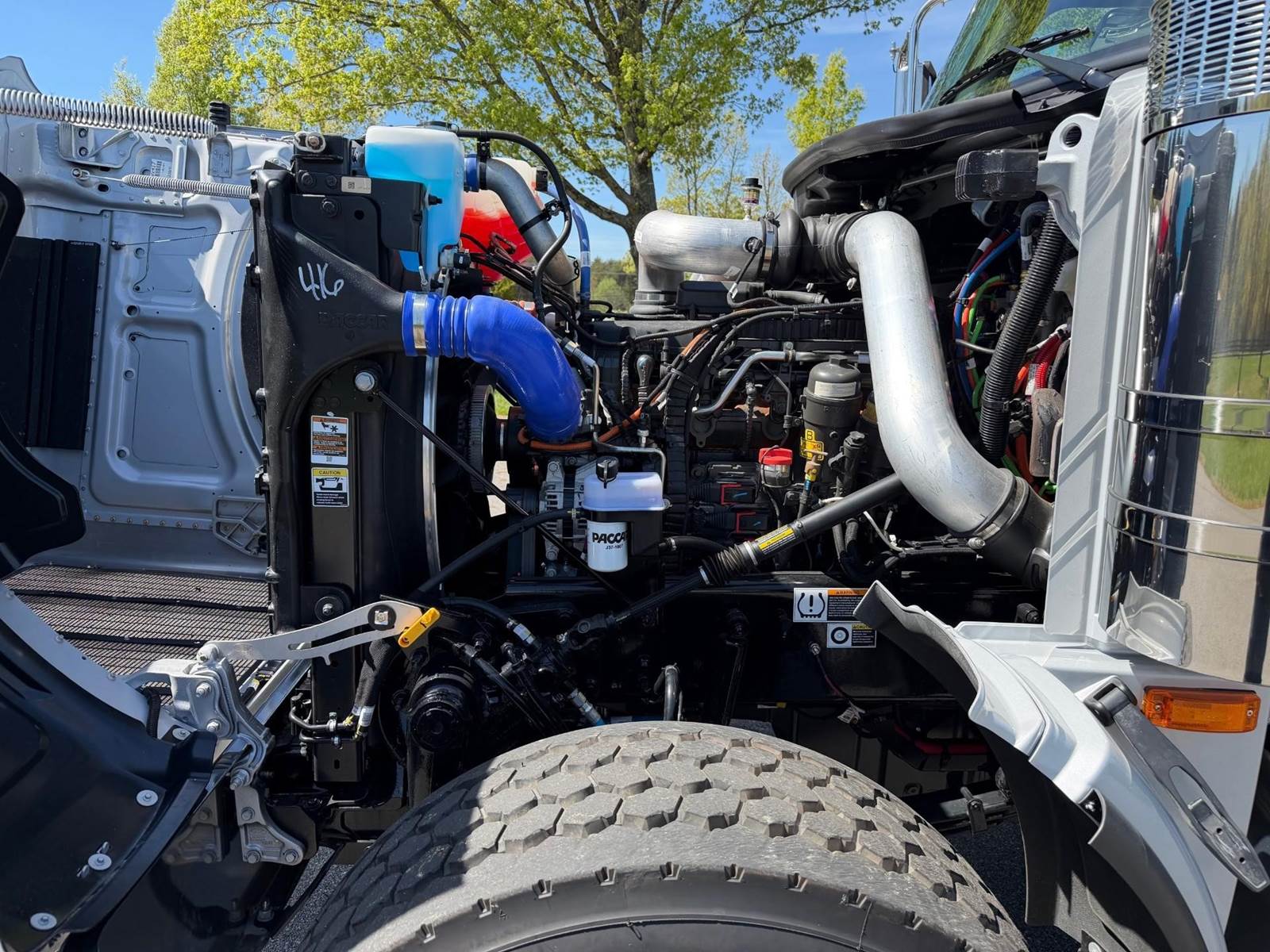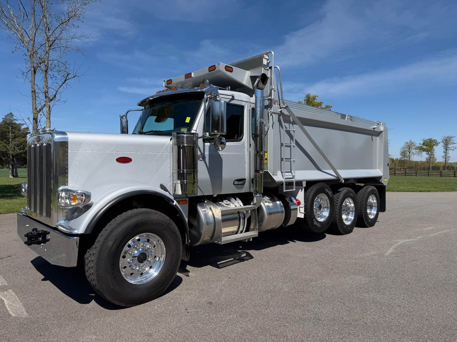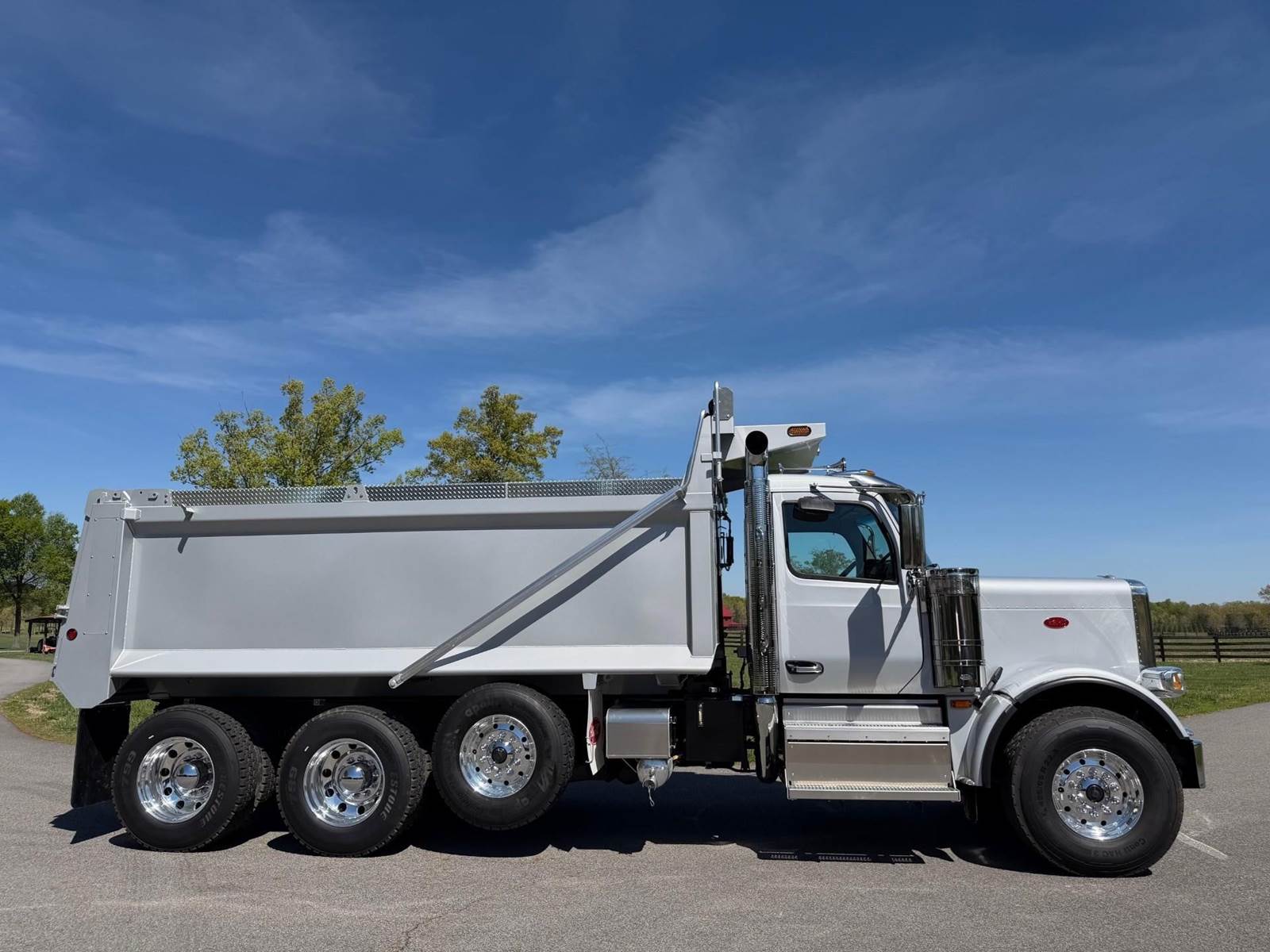 Triaxle, 17.5' Bibeau Steel Dump w/54" Sides, High Lift Gate, MX13 Paccar 510 HP, 18 Speed, 4.10 Ratio, 3 Stage Engine Brake, AirTrac, Double Frame, 20K FA, 46K RA, 20K Steerable L/A, 240" WB, 22'4" Bridge, Dual Exhaust Dual Stainless Breathers, Dual P/S Boxes, Full Locking Rears, Air Tarp, Air/High Lift Tailgate, Pintle Hitch w/Air, 7 Prong Pole, (2) Chutes, P/S, A/C, AM/FM Bluetooth, Heated Mirrors, Cruise, Tilt/Tele Wheel, Dual High Back Heated/Cooled Seats, 80 Gallon Aluminum Fuel Tank, 425/65R22.5 Steer Tires on Aluminum Wheels, 11R24.5 Drive Tires on All Aluminum Wheels, Chrome Bumper, IN SERVICE DATE 1/12/26, 1 YR/100K BASIC WARRANTY, 2 YR/250K STANDARD ENGINE WARRANTY, 5 YR/350K MX EMISSIONS WARRANTY, 5 YR/100K EPA EMISSIONS WARRANTY, 5 YR/500K EATON TRANSMISSION WARRANTY