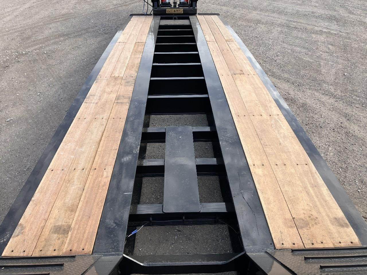 (Pricing is FOB the Factory and FET Included) Pitts 53' Detached Lowboy, 55 Tons Capacity in 12' Concentrated Load / 55 Tons in 16' 3+1 Concentrated Load, Overall Width: 8' 6", Deck Length: 25', Deck Height: 22" Loaded, Deck Flooring: Apitong - 1 1/2" - Covering Outside Only, Main-beams: 16" Fabricated I-Beams - Positive Camber, Side Rails: 14" Fabricated I-Beams - Positive Camber, Cross Members: 10" I-Beam on 24" Centers, Gooseneck: Non-Ground Bearing Hydraulic Detachable Neck - with Pony Motor, 16" King Pin, King Pin Height: 50" ( 4 Positions - Deck Heights 24", 22", 20", 18"), 16 D-Rings, 16 Widening Brackets: 11 Pair of 12" Brackets (extends deck width 2'), Tool Box in Front of Deck with Lockable Lid, (3) Axles 25,000 lb. Capacity w/ 54 1/2" Axle Spacings, Auto Slack, Set up for 4th Flip (Plumbed and Pinned for 4th Axle/Available at an additional cost), Air Ride Suspension-Lift Rear Axle, Steel Wheels, 275/70R22.5 Tires, D.O.T Sealed Wiring Harness, Amber Strobe Lights in Bumper - (Call for Pricing and Availability)