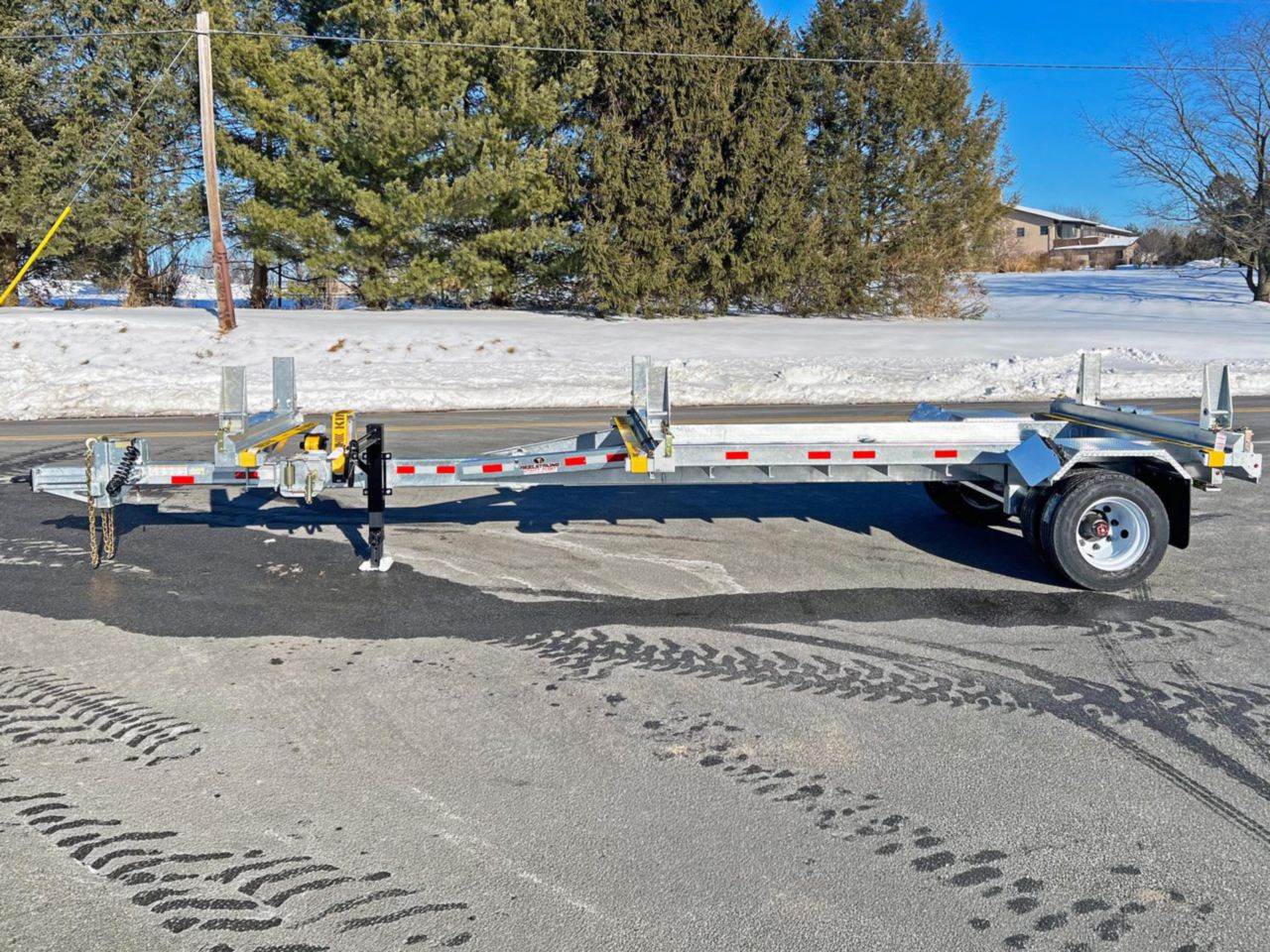 This Reelstrong PTL15 single axle pole trailer is a lightweight, efficient option for hauling poles and long materials without overcomplicating your setup. With roughly 12,850 lbs of payload capacity and a single axle design, it is easier to maneuver, tow, and position on tighter job sites while still handling substantial loads. The Mega-Roller system and EZ slide centering stanchions make loading and securing poles straightforward, and the extendable tongue provides flexibility for varying lengths. Built with a galvanized finish, sealed wiring, and durable components, it is designed to hold up over time with minimal maintenance, making it a practical, cost-effective solution for crews that do not need a larger tandem axle trailer.
