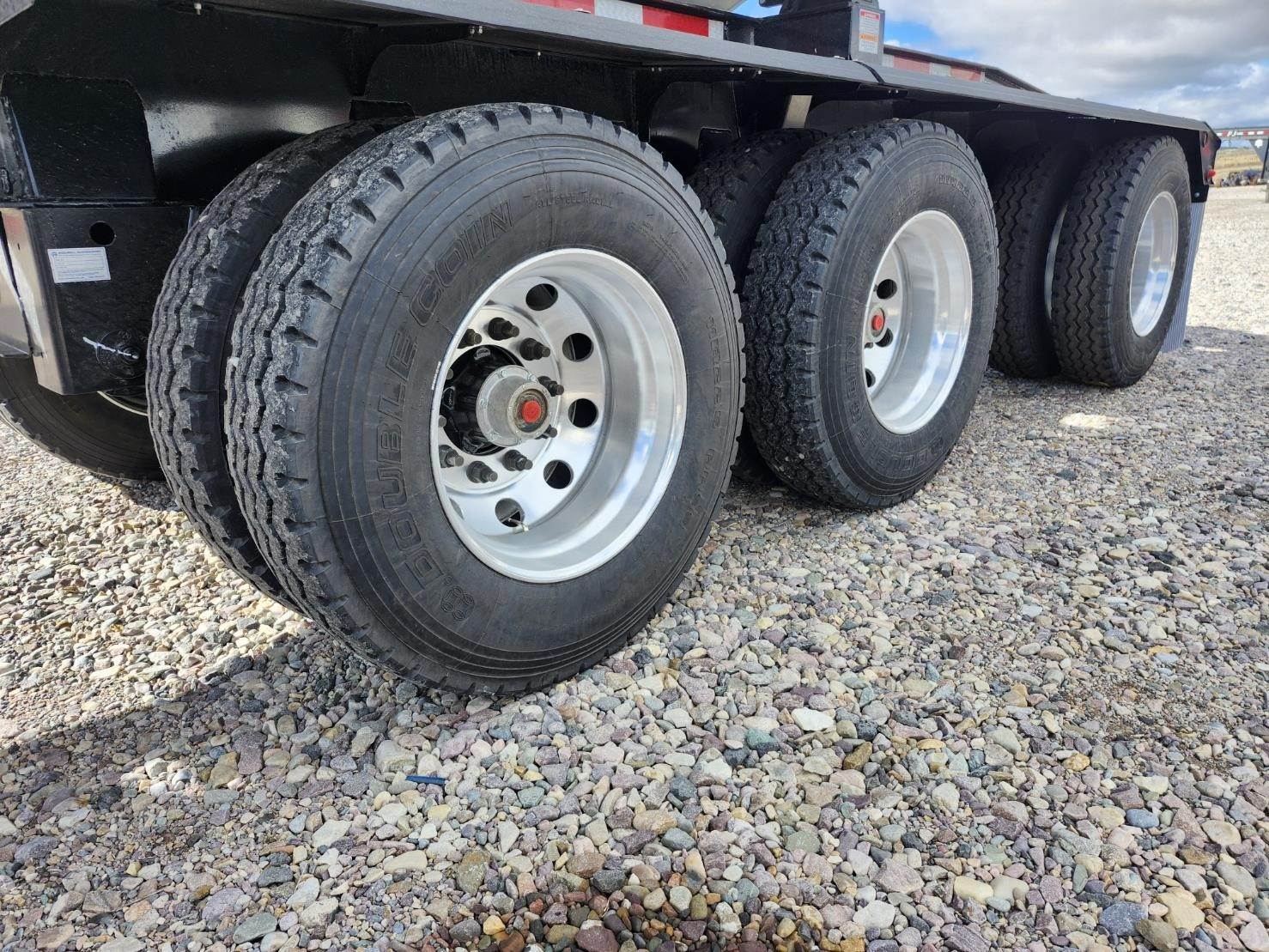 Made in the USA!! 47' trailer with 36' tub, 32 cubic yard capacity, 79" 3rd axle spacing, 18" Kingpin setting, 25K Axles, 2 speed landing gear, Electric roll over tarp, 1/4" AR450 hardened steel tub, Tarp lock-out switch, Push block, Hydraulic valve on trailer, 11R22.5 tires, Non-steerable 3rd lift axle with duals, Requires truck wet kit with minimum 10 gal hydraulic reservoir and 25-30 GPM hydraulic pump, In stock!! (Price + FET and sales tax)