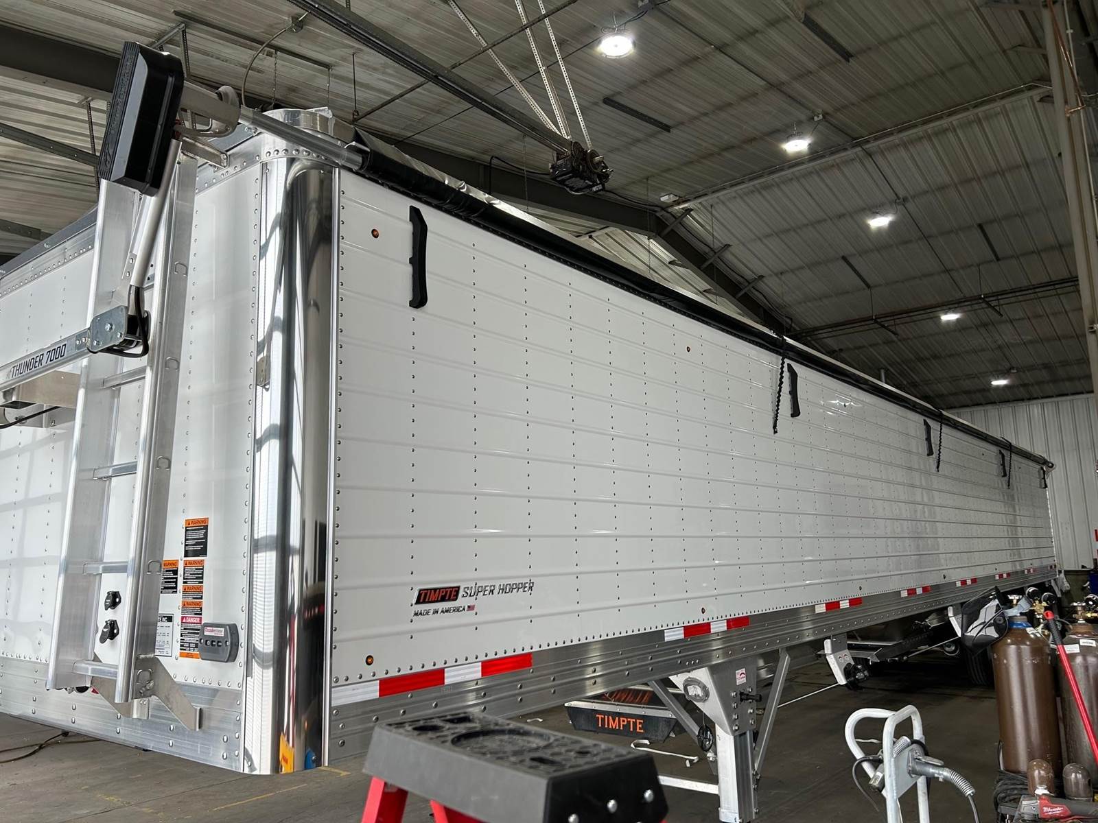 2026 Timpte Tri Axle Super Hopper Grain Trailer, 48' x 96", Front and Rear Ladder, SST Front Corners, Corrugated Panels, 78" Sides, 2 Ag Hoppers, Knock Rails, Electric Roll Over Tarp, Scale, Dump Valve, Tri Axle, Air Ride w Rear Lift Axle, Outside Aluminum Wheels, Inside Steel Wheels, 11R22.5 Tires, Full Rear SST Panel, 2 Rows of Micro Bullet LED Lights, 3 Rear S/T/T Lights.