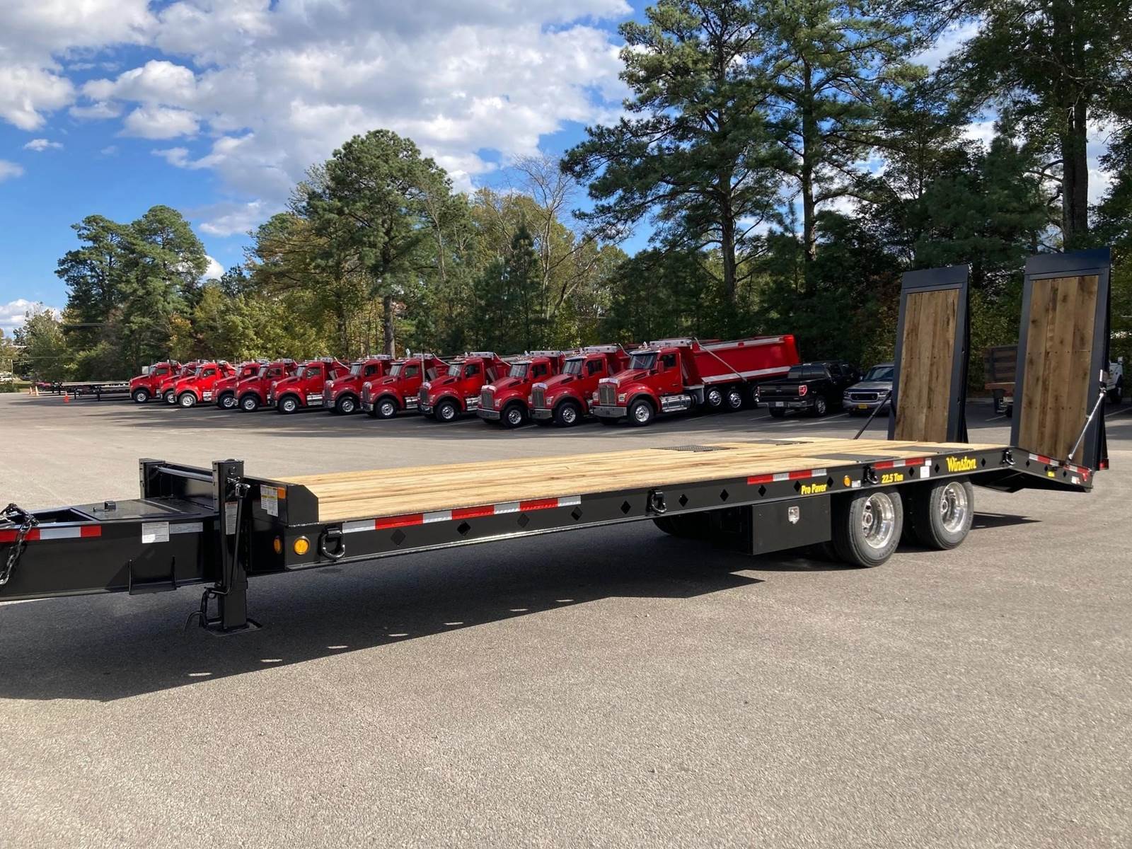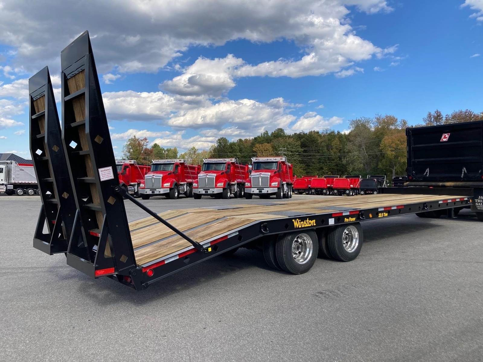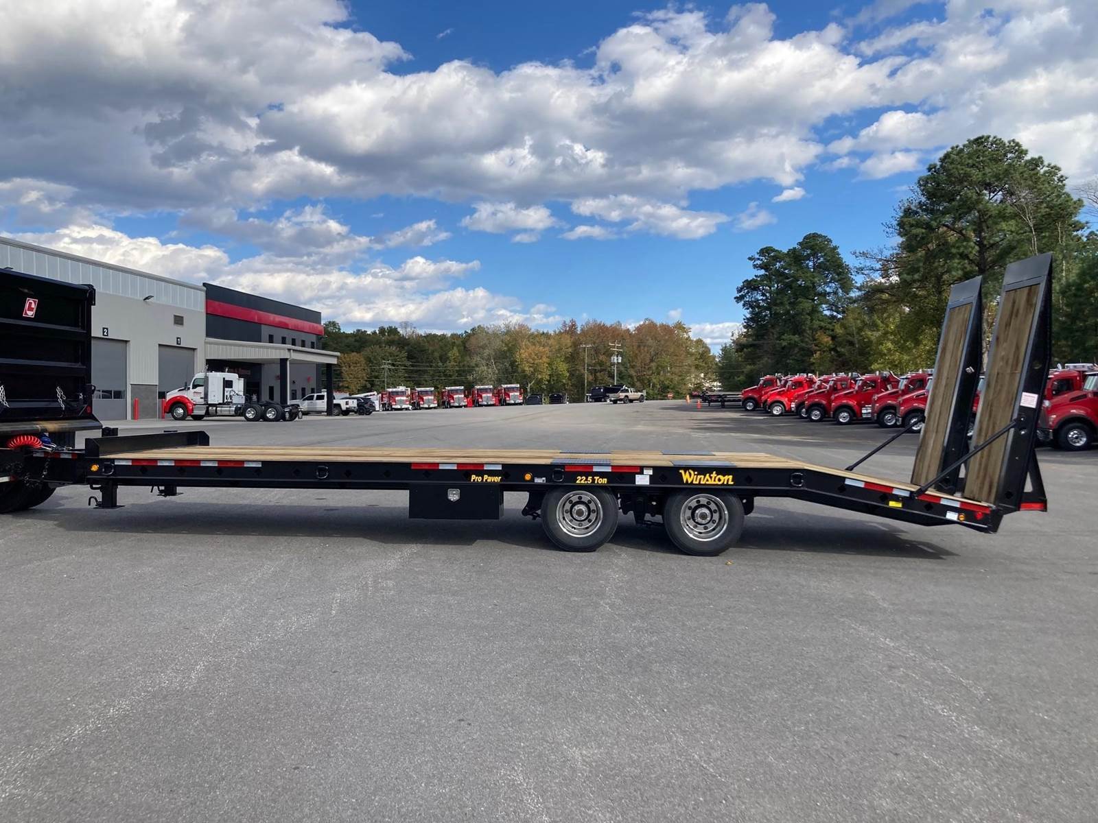 NEW 22.5 TON PRO PAVER, 24' DECK, 6' BEAVER TAIL, 8' HYDRAULIC RAMPS, 102" WIDE, SPRING SUSPENSION, DUAL SPEED LANDING GEAR, ALUMINUM OUTSIDE WHEELS, 235/75R17.5 TIRES, 54,010 LB. GVWR, FET IS INCLUDED IN THE TOTAL PRICE OF $36,900