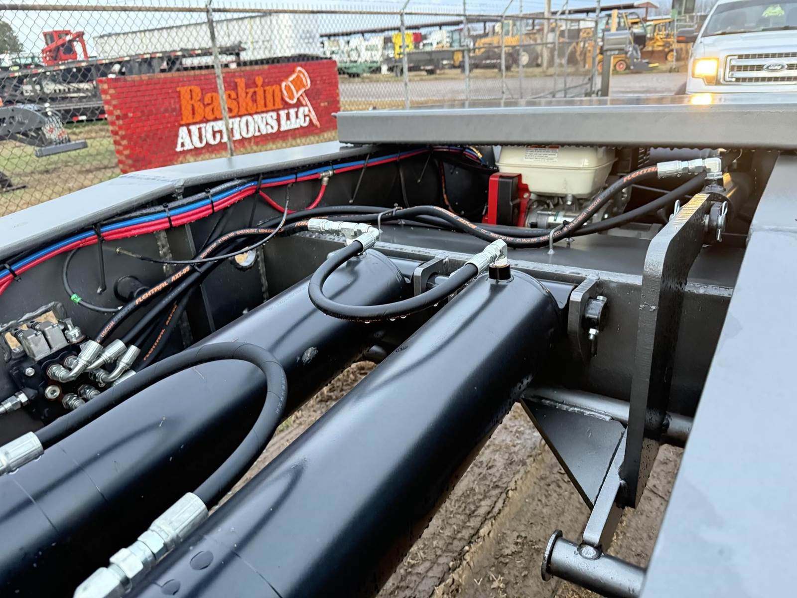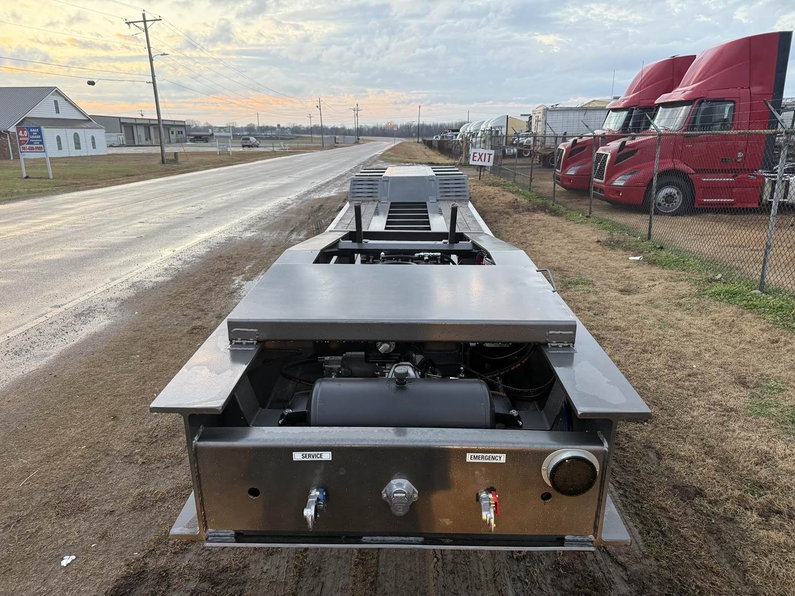 NEW TRAILER, 26 FT WELL, AIR RIDE/ DUMP VALVE CHAIN TIE DOWNS, D-RINGS, HONDA PONY ENGINE, CHAIN/BINDER STORAGE, NON-GROUND BEARING DETACH,...