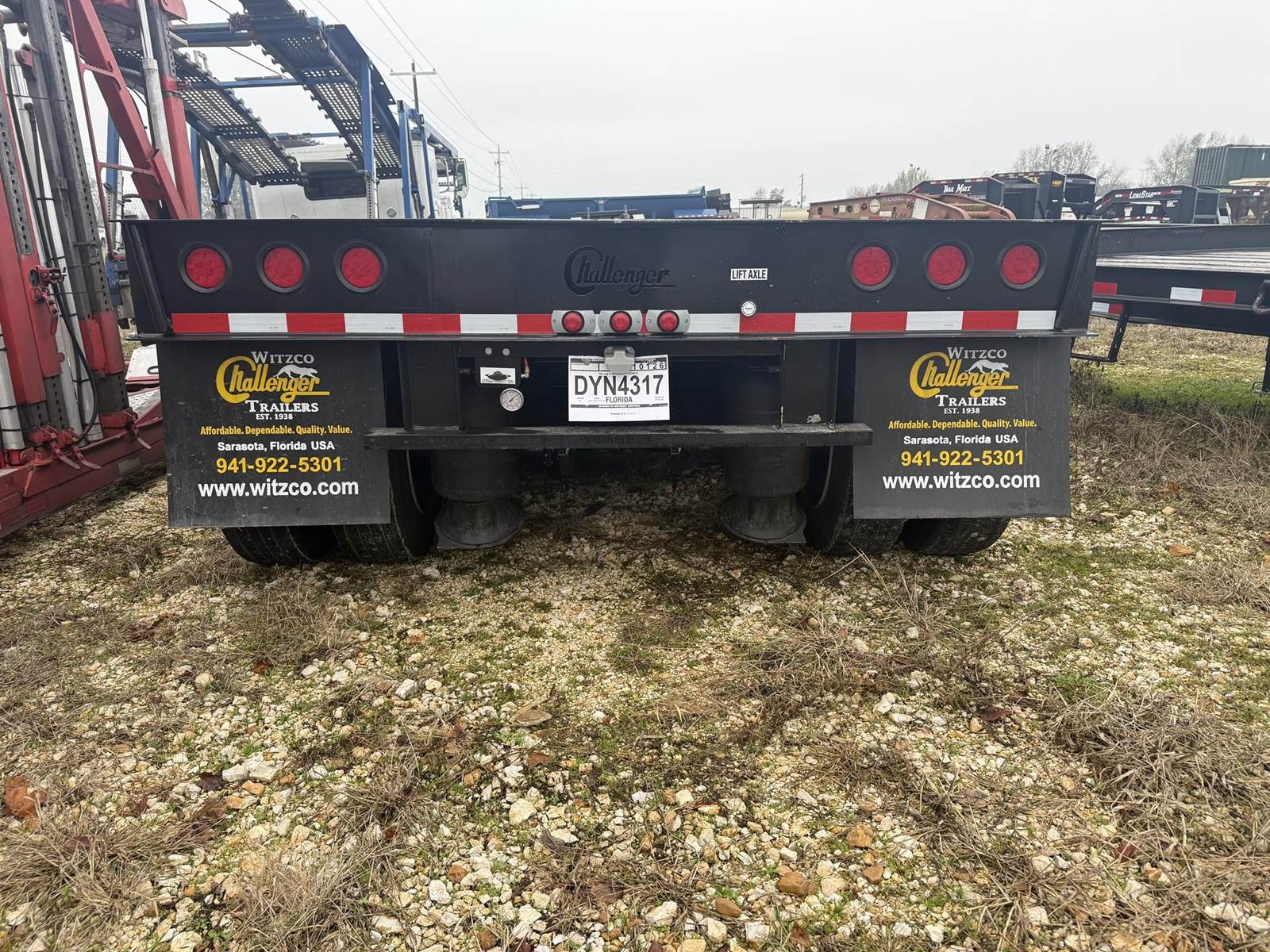 NEW TRAILER, 26 FT WELL, CHAIN TIE DOWNS, AIR RIDE WITH DUMP VALVE AND LIFT AXLE, OUT RIGGERS, D-RINGS, HONDA PONY ENGINE, CHAIN/BINDER...