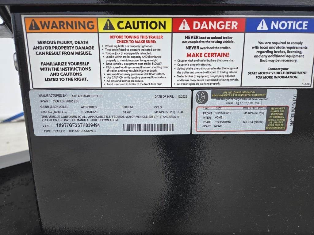 2026 X-STAR TRAILERS LLC 101"X20' Tag Trailer