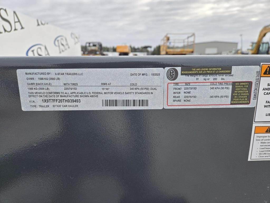 Location: ISA Yard: Merrill, WI GVWR: 3500LB, Approx 83" Width, Approx 20' Deck Length, Spring Ride, Electric Brakes, Break-Away System, Approx 60" Ramp Length, Ramp Storage, LED Lighting, 2" Coupler, 225/75r15 Tires, Seller's Notes: "6" Channel Frame & Tongue, 5/16" Bumper pull Hitch, 3" Channel Crossmembers on 16" Centers, Stake Pockets, 2" Treated Wood Floor" VIN: 1X9T7FF20TH039493