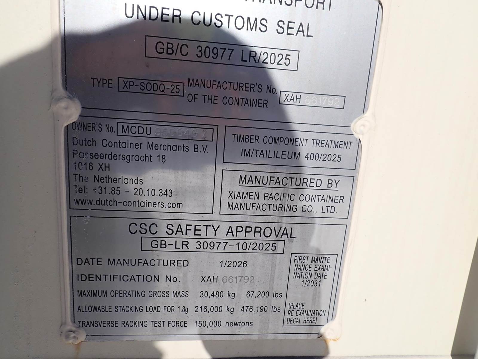 2026 XIAMEN PACIFIC 40 FT CONTAINER