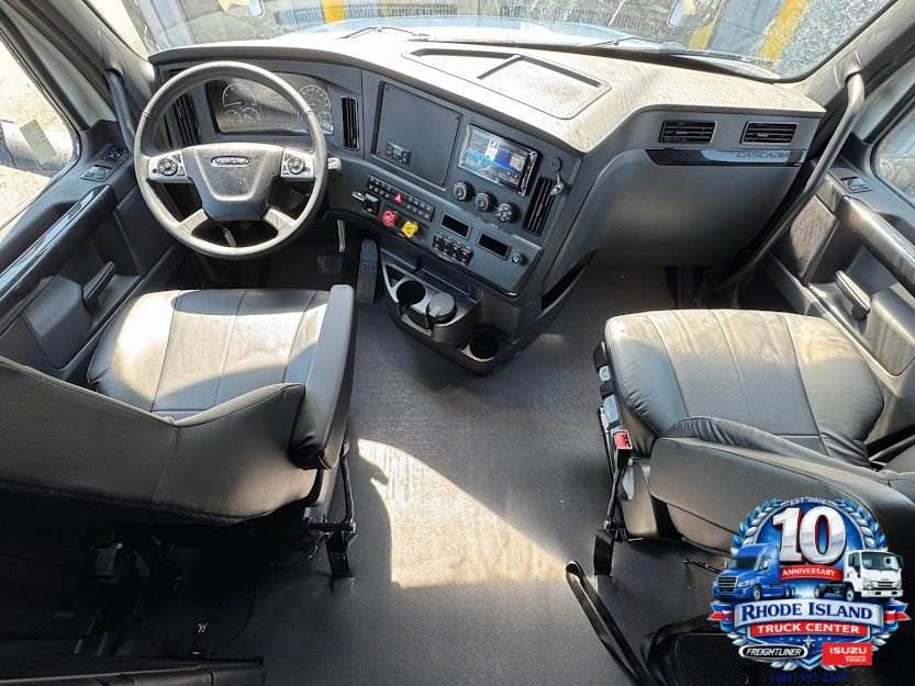 2027 Freightliner Cascadia 126 72 Raised Roof Sleeper built for long haul performance, efficiency, and premium driver comfort. This truck is powered by the Detroit DD15 Gen 5 High Power 14.8L engine delivering 505 horsepower at 1625 RPM, with 1750 lb-ft of torque at 975 RPM and 1900 governed RPM. Paired with the DT12-1750 One Efficient on-highway 12-speed overdrive automated manual transmission, this Cascadia delivers smooth shifting, excellent fuel economy, and proven reliability for demanding operations.Equipped with positive and negative jumpstart posts mounted on the frame next to the starter for easy service access. The RH rail Espar Hydronic2 D5S engine preheater with dash-mounted easy-start controller ensures reliable cold-weather starts. Chrome engine heater receptacle mounted under the LH door adds convenience.Front axle is a Detroit DA-F-13.3 rated at 13,300 pounds, paired with a 13,300 lb taperleaf front suspension for durability and ride quality. Driver-controlled traction differential on the forward tandem improves traction in challenging conditions. Front and rear brake dust shields enhance brake longevity. The Meritor rear brake system, with Wabco Tristop long-stroke spring parking chambers and Haldex automatic slack adjusters, provides dependable stopping power. Wabco 4S/4M ABS system includes hill start aid and traction control with ATC shut-off switch.Outfitted with a 15-foot Tectran Magnum coil trailer air hose and 15-foot detachable coiled electrical cable with SAE J560 connector for reliable trailer connections. A 36-inch stainless steel slide bar with dual spring-type air hose hangers keeps lines organized. A 21-inch deck plate is flush-mounted between the rails for safe and convenient access.Exterior features include a painted aerodynamic bumper with chrome overlay, chrome grille with integral surround, LED fog lights, and dual bright-finish heated aerodynamic mirrors with integrated convex mirrors. Heated hood- and fender-mounted mirrors improve visibility in all conditions. Plastic quarter fenders with logo and braided fifth wheel ground strap add durability and function. Dual 120-gallon aluminum fuel tanks provide extended range. Polished step finish enhances appearance.Rides on Continental HSL 3 295/75R22.5 front tires and HDL3 LTL 295/75R22.5 rear tires, mounted on Accuride Accu-Lite aluminum disc wheels for strength and weight savings.Sleeper is designed for maximum comfort with LH and RH baggage doors, solar-tinted crank-out sleeper windows, and a foldable upper bunk. Auxiliary HVAC system with constant temperature control and Webasto AT2000STC air heater keeps the sleeper comfortable in all climates. SmartTemp 3 Bluetooth control allows convenient operation. AC 120-volt cab wiring with shore power and Eaton 1800-watt pure sine wave inverter/charger system supports appliances and electronics on the road.Interior features include Elite 2.0 high-back air suspension driver seat with dual air lumbar, active bolster, cushion extension, adjustable shock, tilt, and integrated heating and ventilation. Dual armrests for driver and passenger, along with black Laredo leather seating surfaces, provide premium comfort. Leather-wrapped 4-spoke steering wheel with chrome switch bezels adds a refined feel.Additional features include first aid kit, removable front tow and recovery device, automatic self-adjusting backup alarm, and complete safety and convenience systems throughout.This 2027 Freightliner Cascadia 126 sleeper is engineered for fleets and owner operators who demand efficiency, durability, advanced technology, and long haul comfort in one complete package. Contact us for a complete build description. Price does not include State or Federal Taxes.