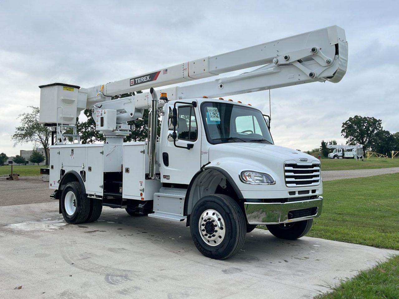 FOR SALE! A brand new Freightliner M2106 4x4 upfitted with a Terex TC55 Optima bucket. This vehicle is powered by a 300 hp Cummins L9 diesel motor, and gears are shifted via an Allison 3000RDS transmission. The FAWR is 14k lbs and the rear is rated at 21k lbs. The upfitted Terex TC55 Optima offers a max working height of 60 ft and a bucket capacity of 700 lbs. Contact for more information!