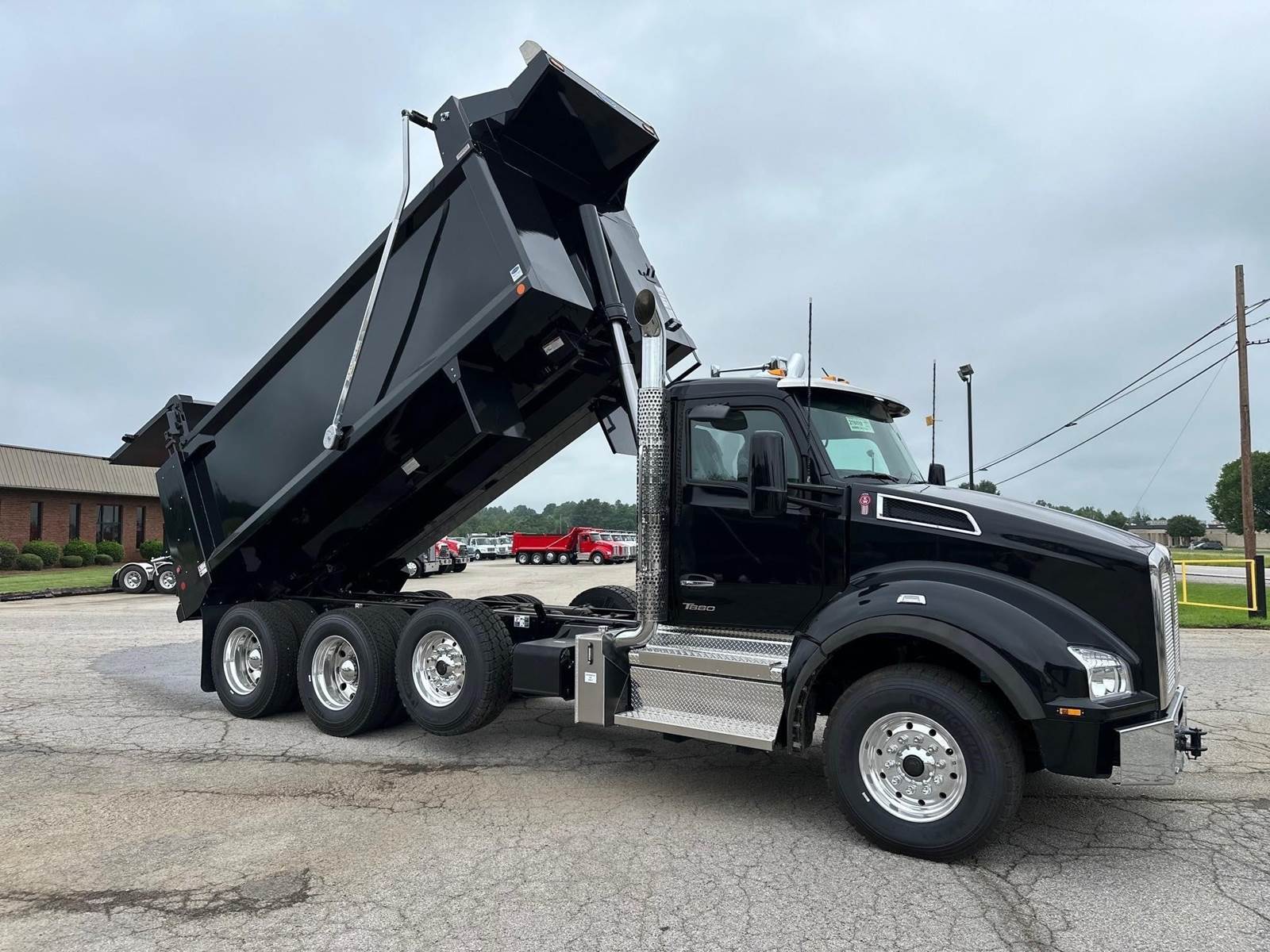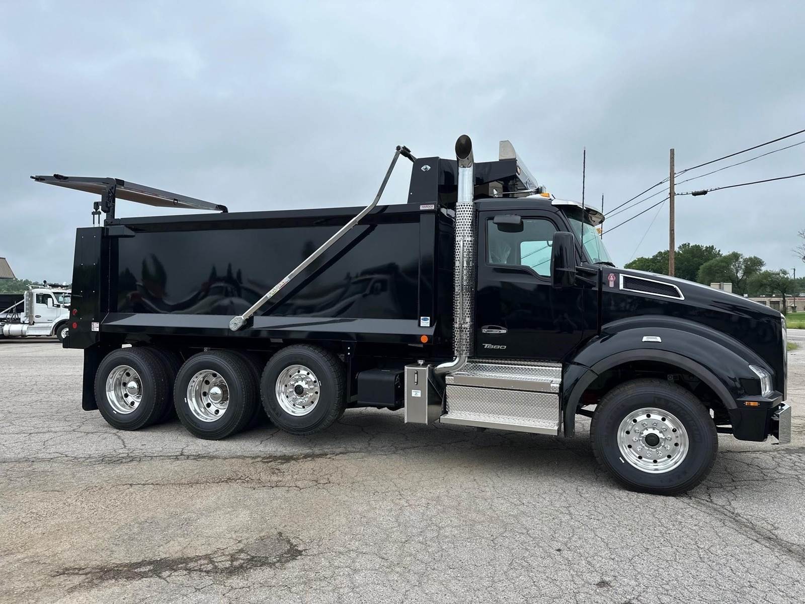 2027 Kenworth T880 --- Tri Axle, X15 Cummins 500 HP, Eaton-Fuller Manual 8LL, 4.10 Ratio, 18,740 Front Axle, 46,000 Rear Axle, 228" Wheelbase, 21' 1" Bridge, Chalmers, Double Frame, 3 Stage Engine Brake, Air Brake, Axle & Differential , 17.6' HARDOX STEEL Heritage Dump Body, 60" Sides, High Lift Gate, Air Gate, Electric Tarp, 20,000 Lb. Steerable Lift Axle, Pintle Hitch with Air Lines, All Aluminum, Engine Heater Plug, Dual Stacks, Aluminum Fuel Tank, Daylite Doors, Air Ride Cab, Dual High Back Seats, High Level Interior, Chrome Gauge Package, Heated Mirrors, Cruise Control, Tilt & Telescopic Steering Wheel, AM/FM, Power Windows, P/L, P/S, AC.