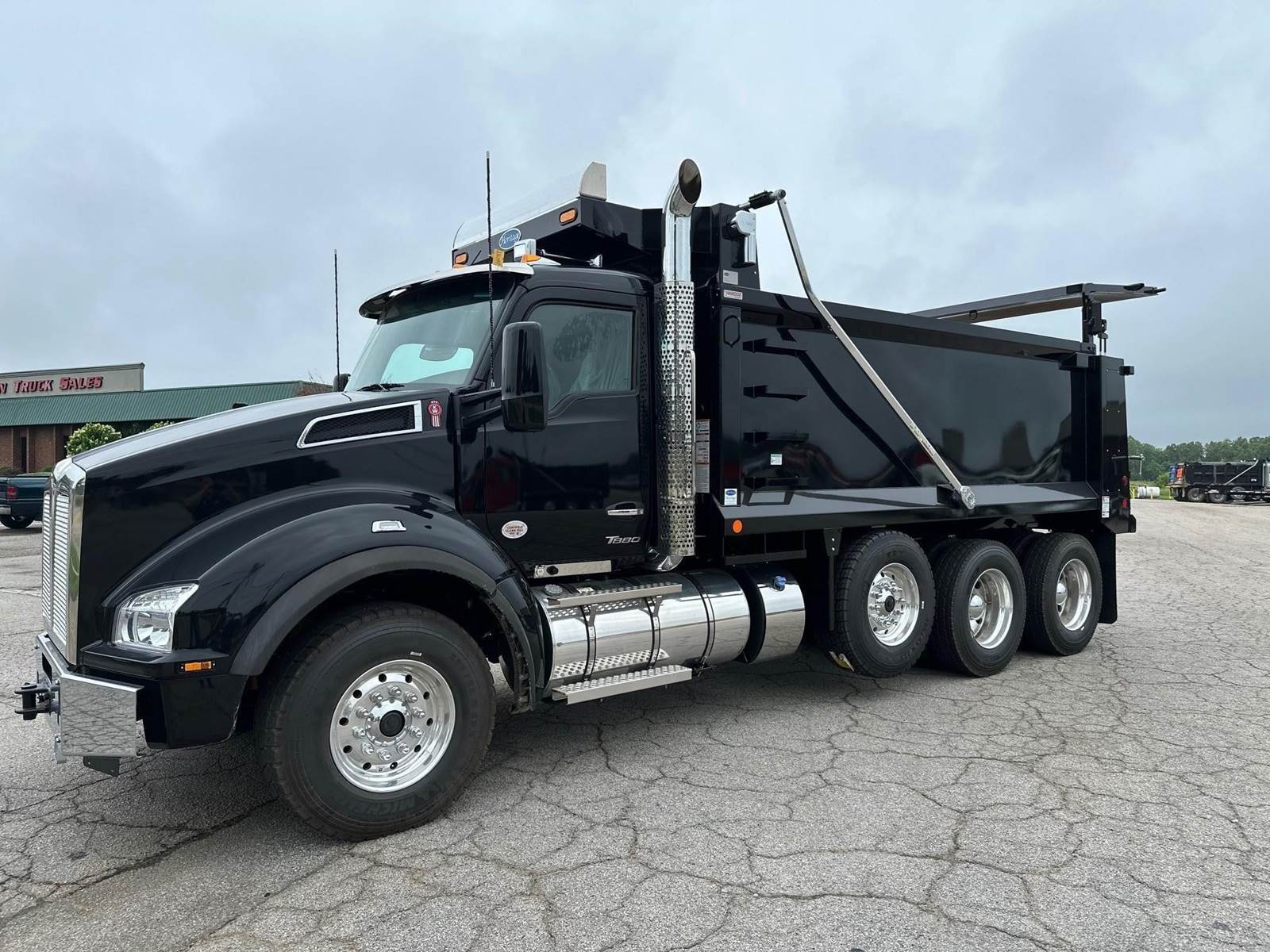 2027 Kenworth T880 --- Tri Axle, X15 Cummins 500 HP, Eaton-Fuller Manual 8LL, 4.10 Ratio, 18,740 Front Axle, 46,000 Rear Axle, 228" Wheelbase, 21' 1" Bridge, Chalmers, Double Frame, 3 Stage Engine Brake, Air Brake, Axle & Differential , 17.6' HARDOX STEEL Heritage Dump Body, 60" Sides, High Lift Gate, Air Gate, Electric Tarp, 20,000 Lb. Steerable Lift Axle, Pintle Hitch with Air Lines, All Aluminum, Engine Heater Plug, Dual Stacks, Aluminum Fuel Tank, Daylite Doors, Air Ride Cab, Dual High Back Seats, High Level Interior, Chrome Gauge Package, Heated Mirrors, Cruise Control, Tilt & Telescopic Steering Wheel, AM/FM, Power Windows, P/L, P/S, AC.