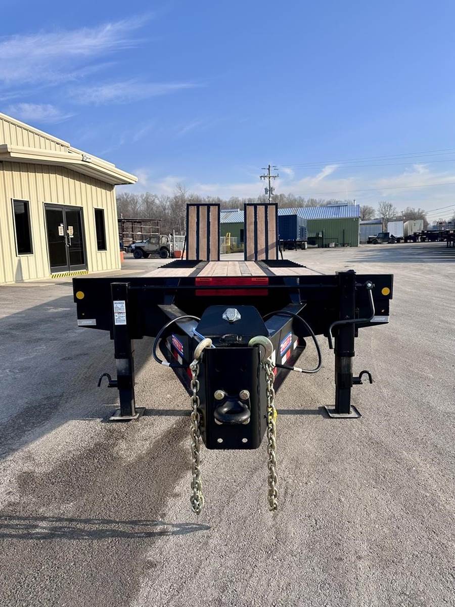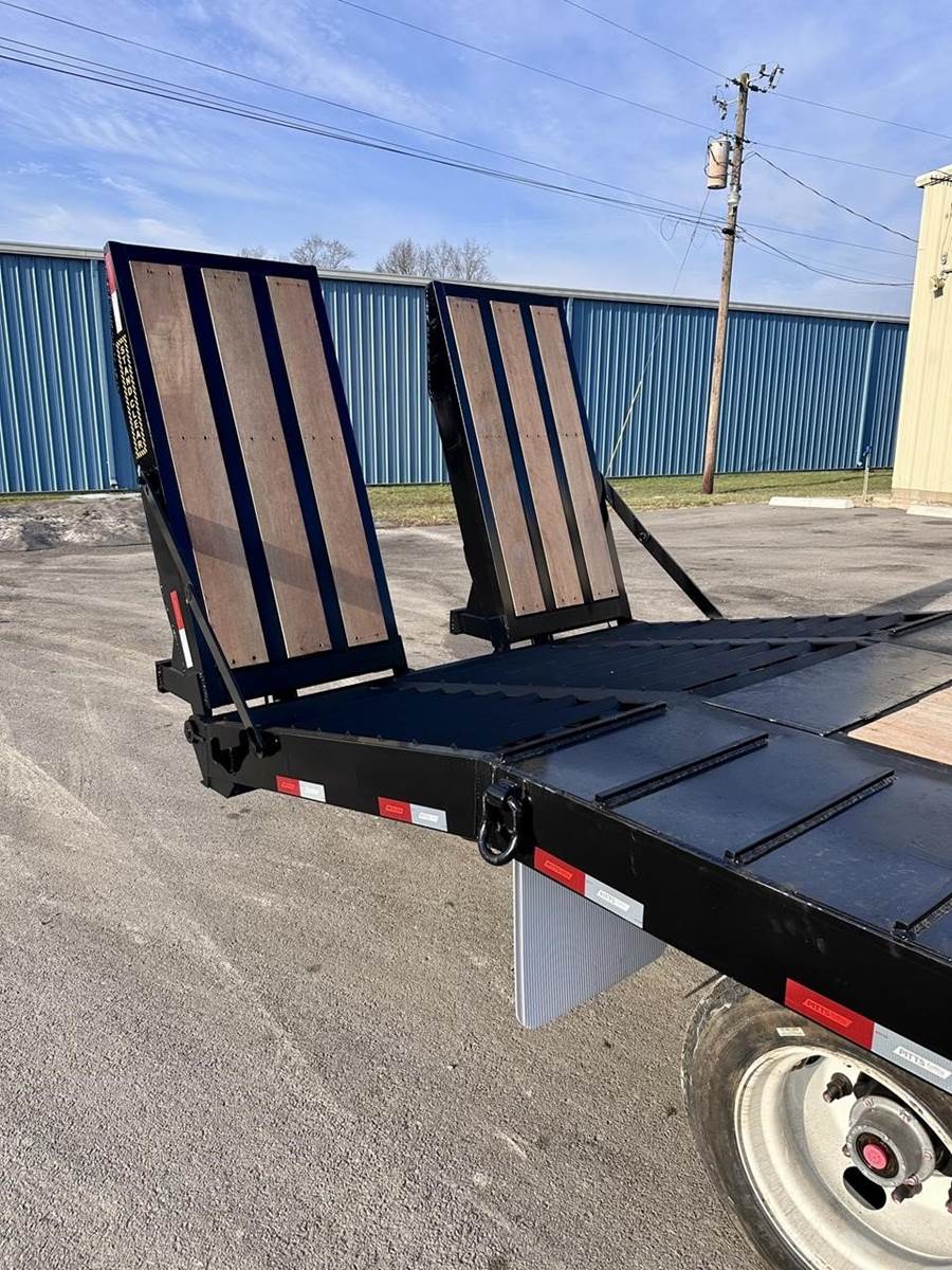 20Ton Pintle Hitch, 31' overall length, 20' flat deck, 5' beavertail, 33" Loaded Deck Height, Apitong Wood Floor, Toolbox in the Gooseneck, Spring Suspension, Air Brakes, 17.5 Tires, Hydraulic Ramps