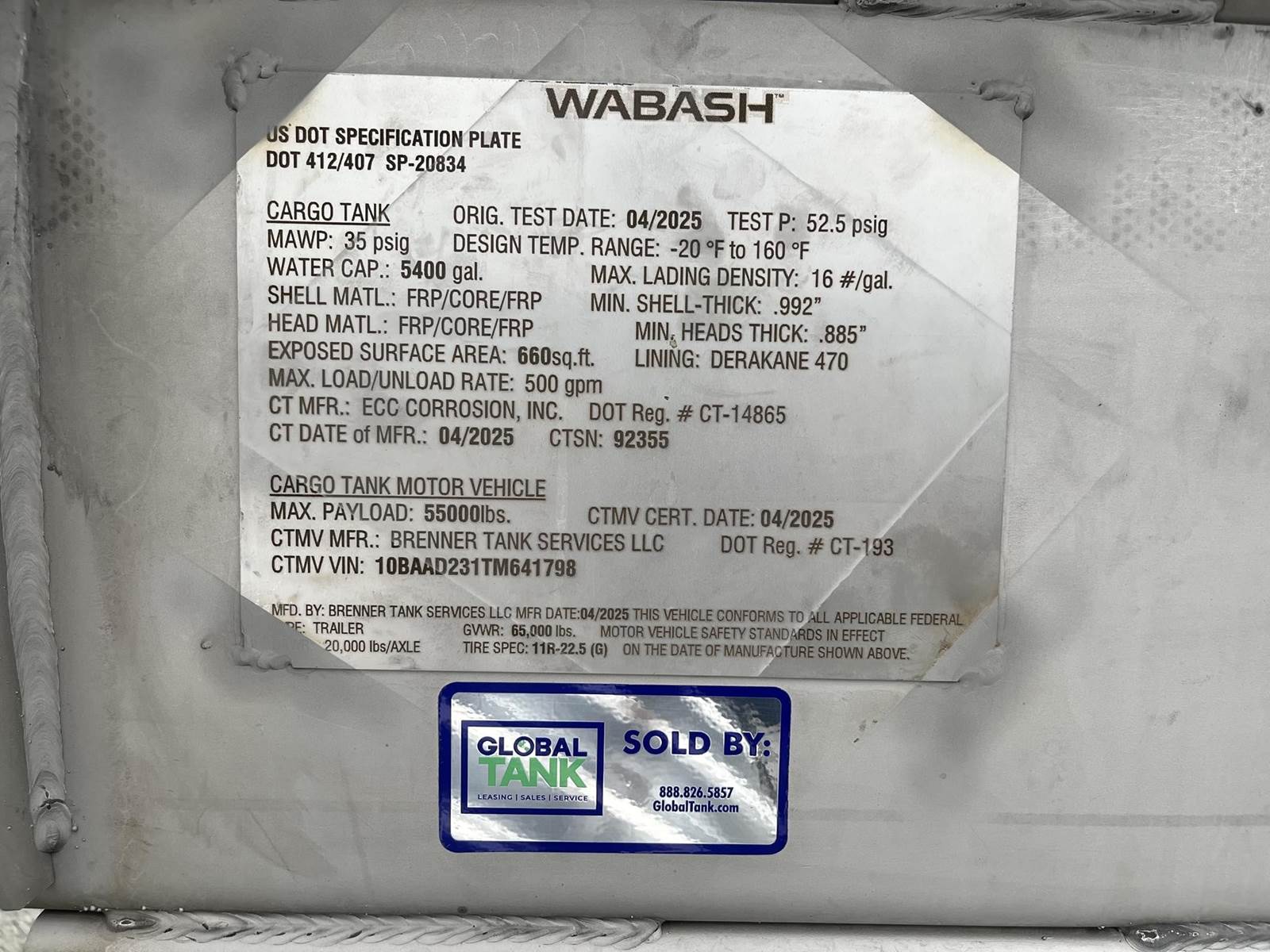 5400 GAL FRP TRAILER BLEACH SPEC