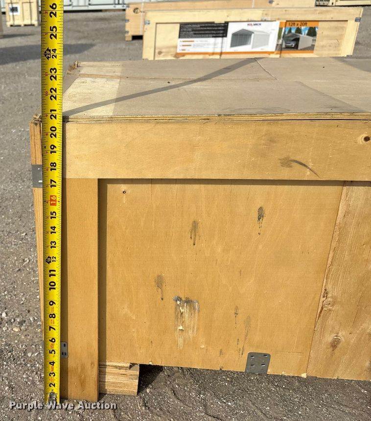 KJ K2223G metal garage, Serial: KJ25018427, Length: 22', Width: 23', Bay Door Opening: 8' 4" W x 7' 4" H,