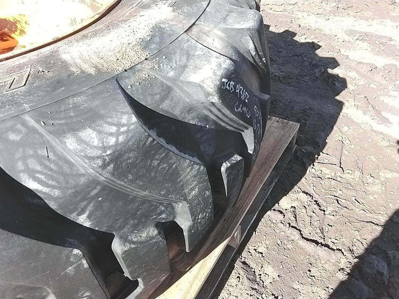 Good used Camso tire from a Cat 420E backhoe. Tire is mounted on a cat rim 16Lx24 p# is 195-6344. Has about 50% left 12ply and is 19.5Lx24...