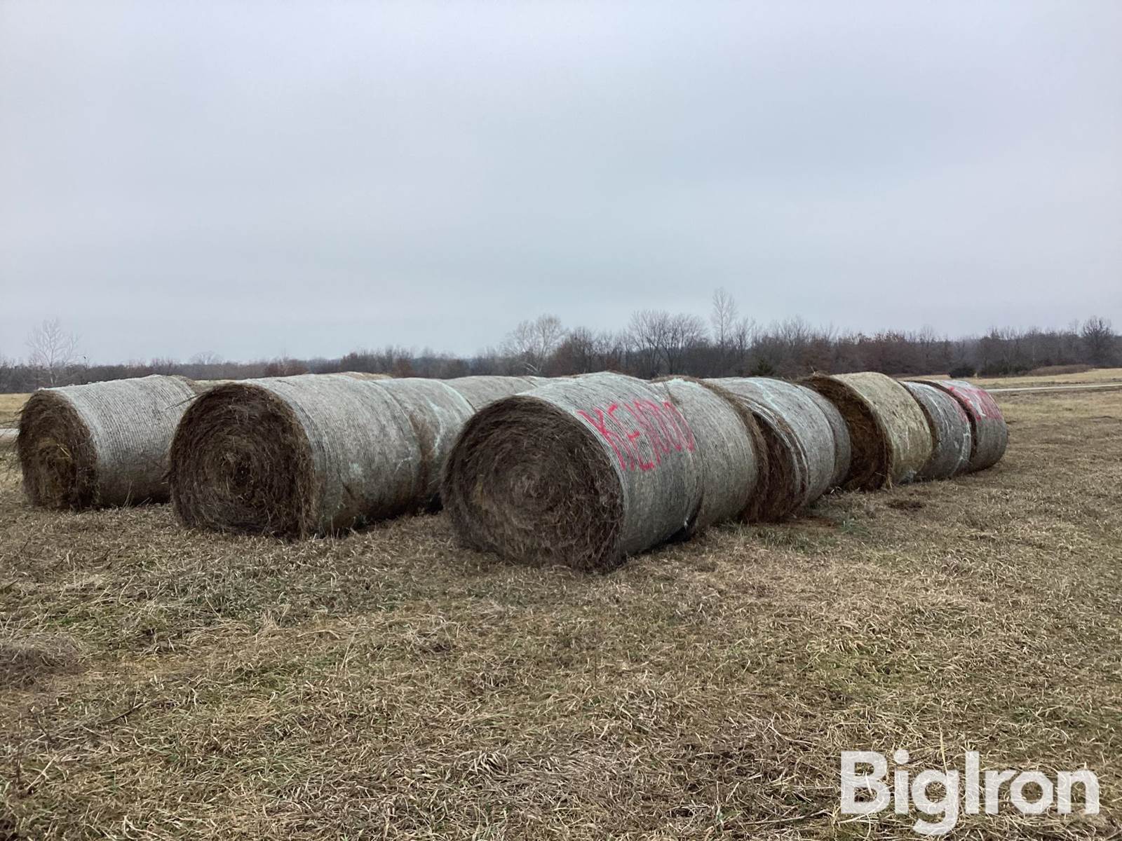 21) 5'X6' Grass Hay Bales with Netwrap, Selling as 1 Lot-Total of 21 Bales. 5'X6' Grass Hay, Baled with a John Deere 567 Baler. Estimated 1,250LBS. 2025 Hay Crop