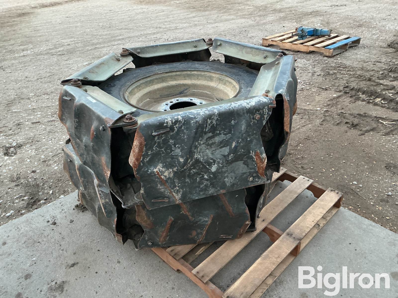22.5 Recap Pivot Wheels w/Agri Tracs, Qty (2), 22.5 recap tires on 8 bolt galvanized steel wheels, (2) 6 link 14” wide Agri Tracs
